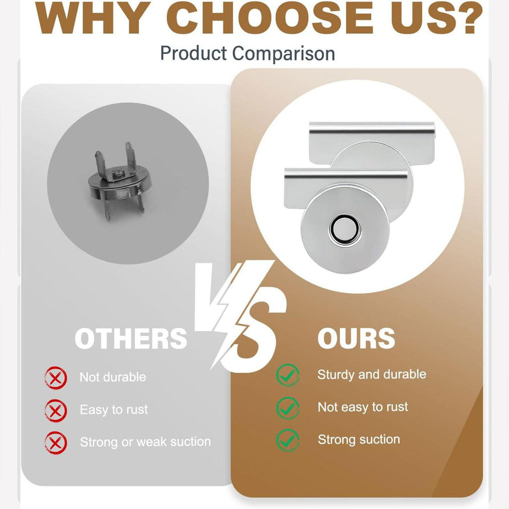 - 【Versatile】: Includes 10 sets of zinc alloy bag buckles, perfect for DIY projects, wallet repairs, and clothing upgrades. The seamless magnetic closure makes crafting easy and no hassle