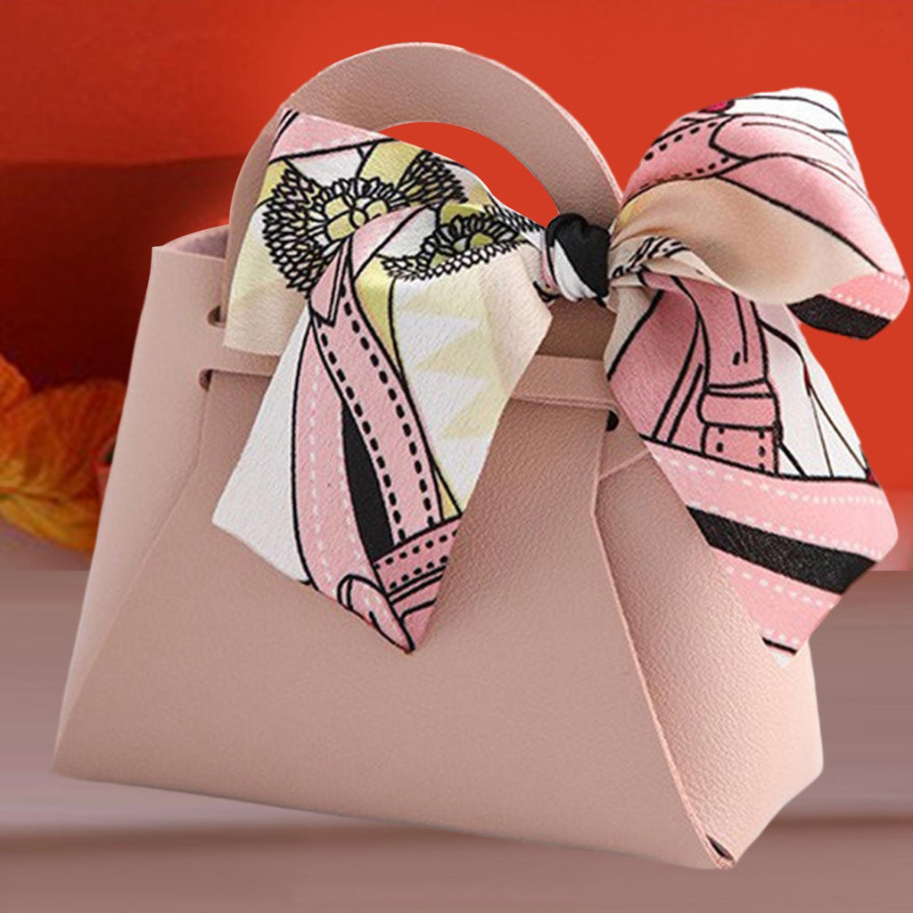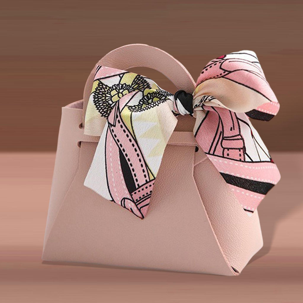 Maxbell 5 Pieces Exquisite PU Leather Wedding Favours Bags Handbag with Ribbons Pink