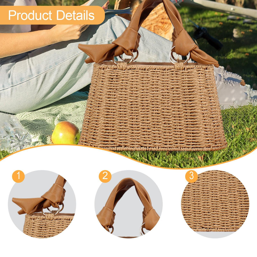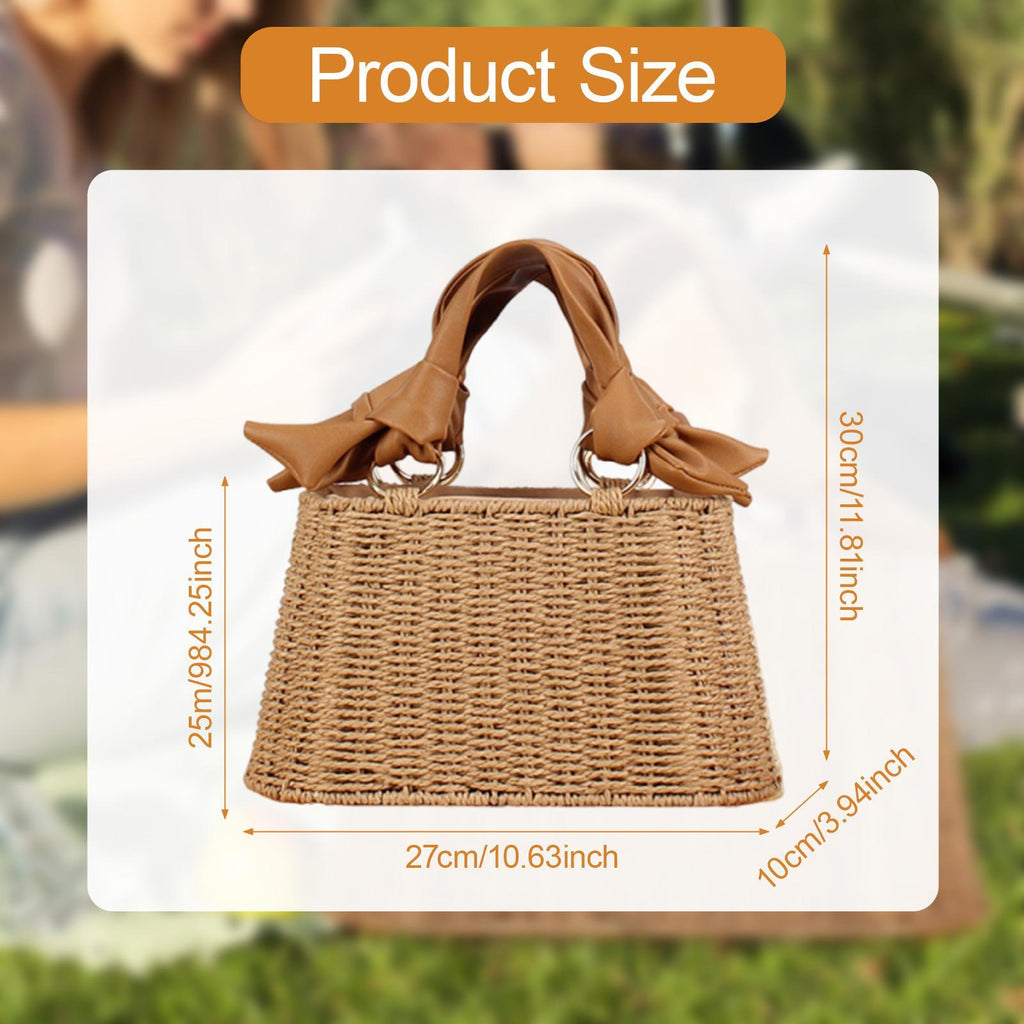 【Quality Materials & Dimensions】: Made from paper rope and pu leather handle, this woven bag measures 27 cmx10 cmx25 cm/10.63 inchx3.94 inchx9.84 inch, ensuring both longevity and ample storage space in a chic package
