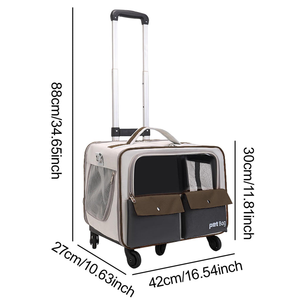 【Spacious Interior】: Pet Travel Bag measures 42 cm x 27 cm x 30 cm/16.54 inch x 10.63 inch x 11.81 inch, Pull rod length 88 cm/34.65 inch, provides ample space for your pet to move comfortably