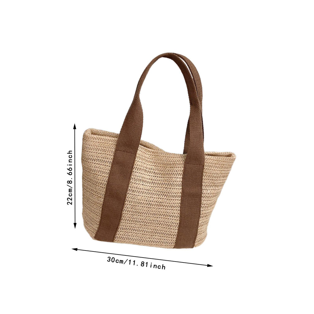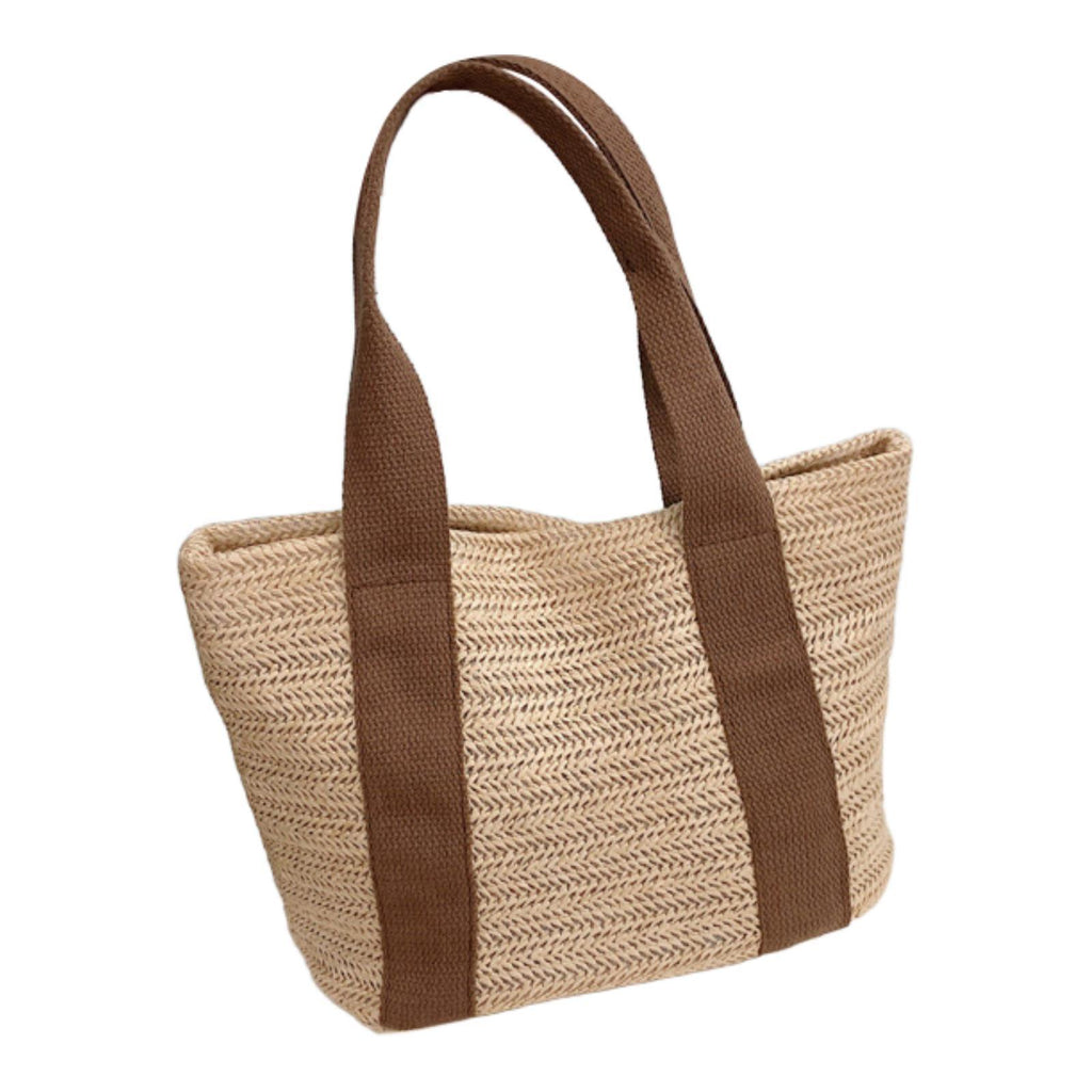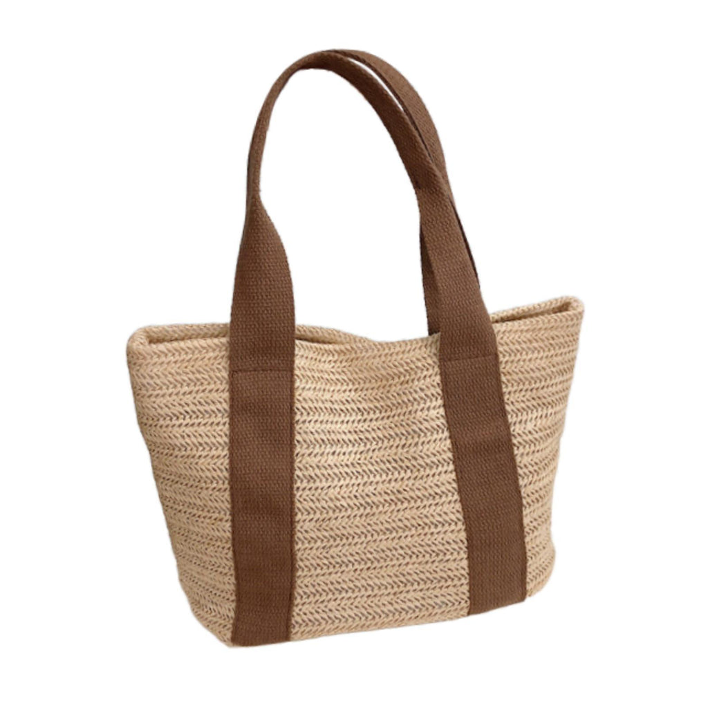 Handwoven Tote Bag Lightweight Work Dating Ladies Beach Travel Women Handbag Brown