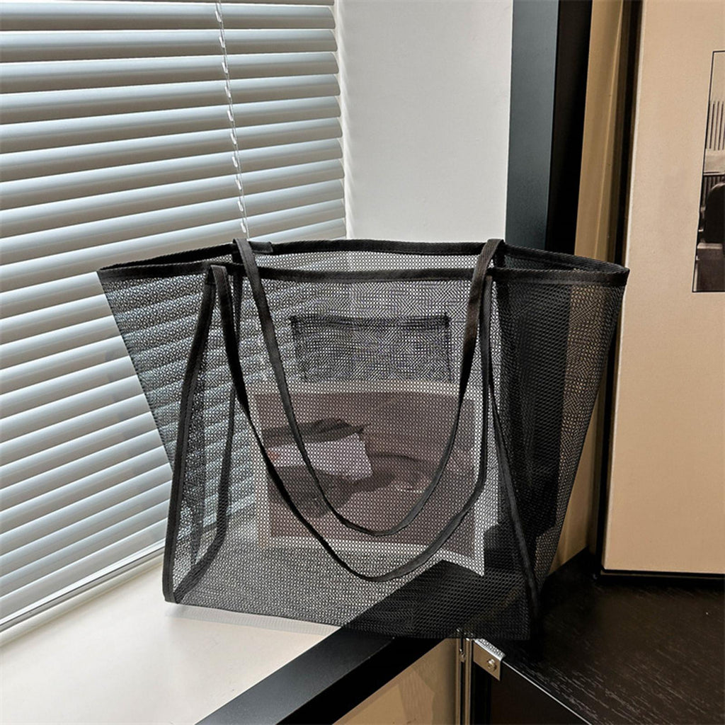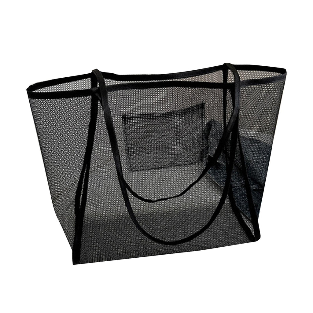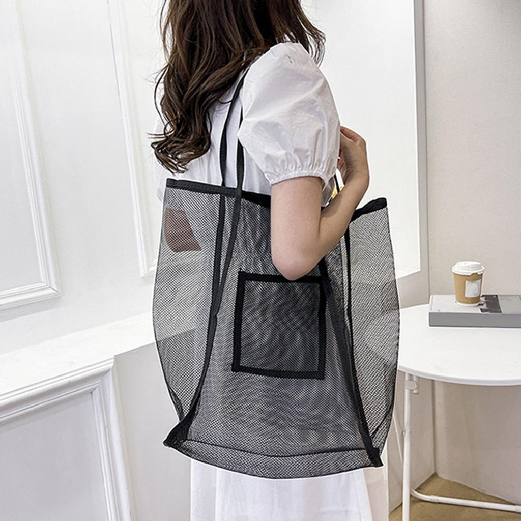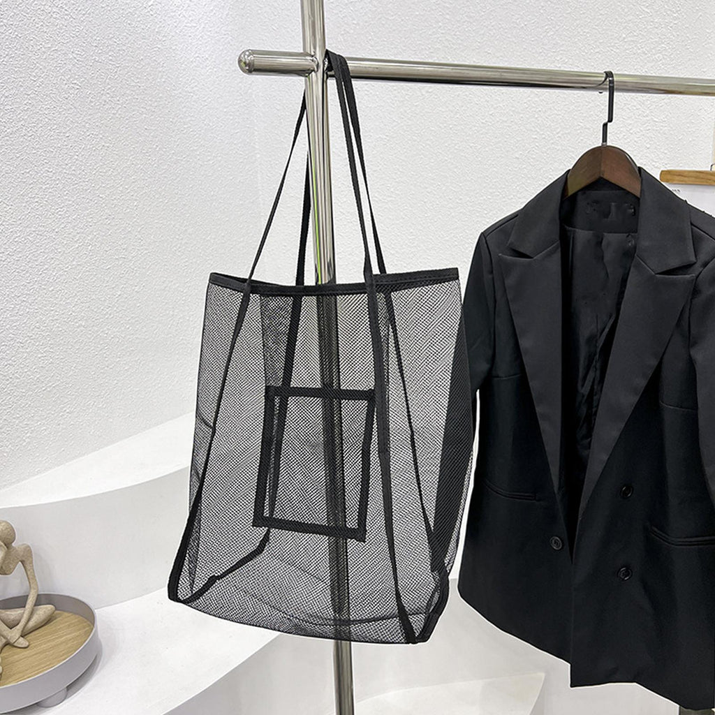 Maxbell Mesh Beach Bag Chic Large Trendy Stylish Handbag for Fishing Vacation Travel Black