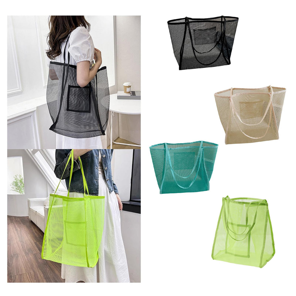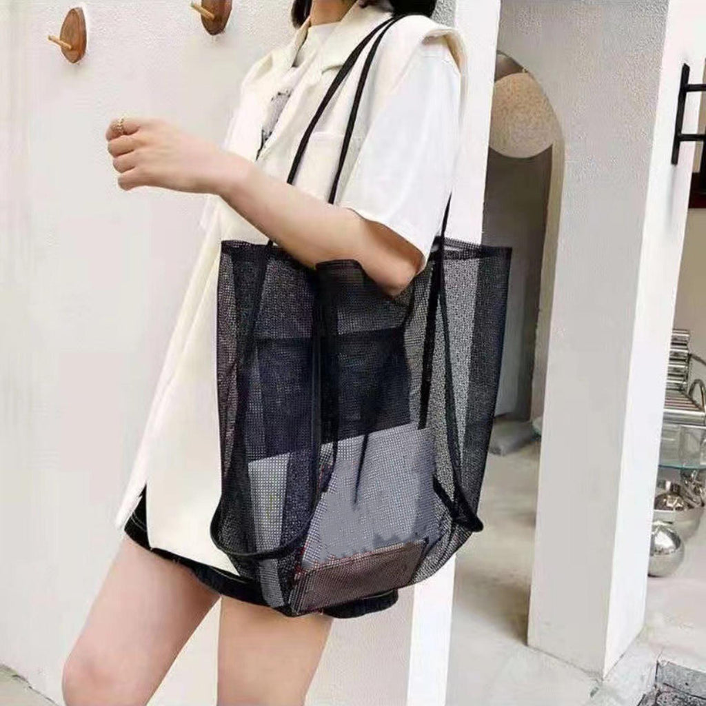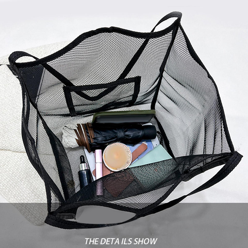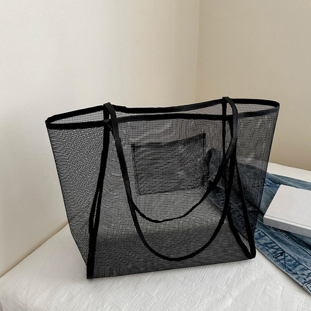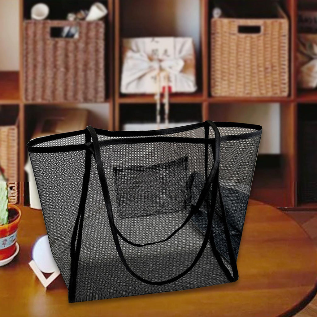 Maxbell Mesh Beach Bag Chic Large Trendy Stylish Handbag for Fishing Vacation Travel Black