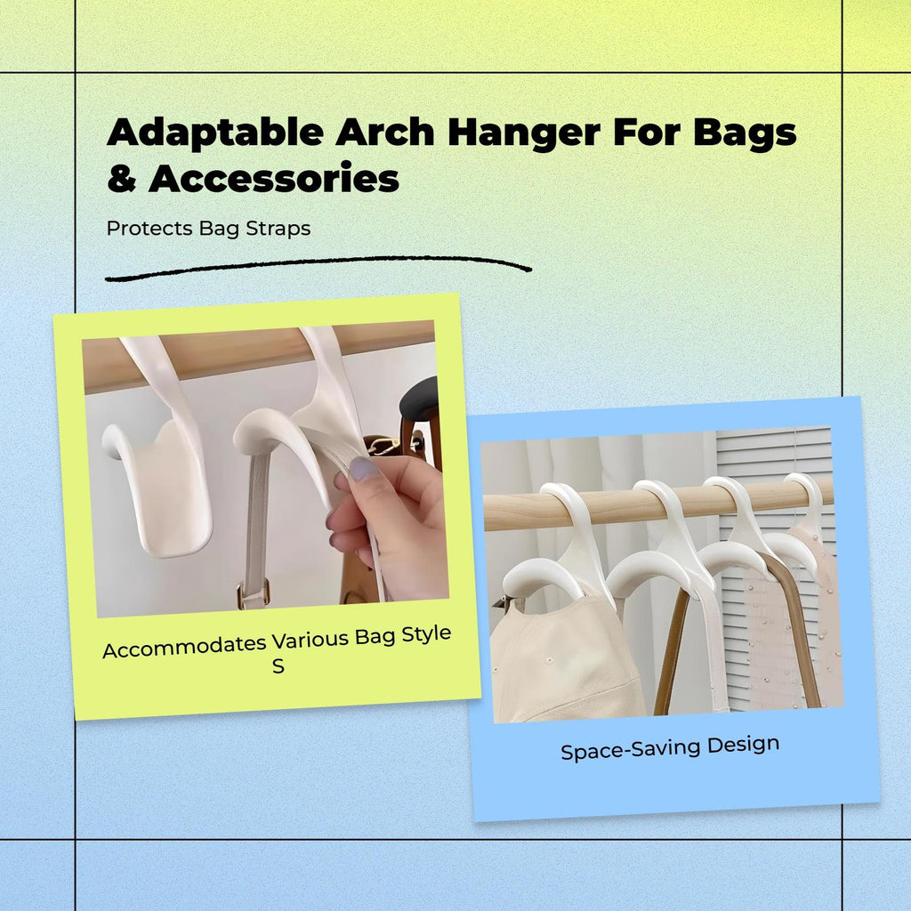 【Adaptable Purse Hanger for Organized Storage】This stackable purse hanger is designed to keep your handbags, scarves, and accessories neatly organized in your closet, wardrobe, or bedroom. Featuring a sturdy arched frame, it prevents strap deformation and maximizes space effectiveness. 【High-Quality and Sturdy Construction】Made from materials, this organizer provides strong support for various bags and accessories, ensuring long use and dependable performance. 【Multi-Functional Organizer for Home】perfect for hanging purses, coats, scarves, and jewelry, this purse hook is perfect for home organization, wardrobe management, and entryway decoration. 【Space-Saving Stackable Design】The stackable feature allows you to maximize upright space in closets or on doors, keeping your items tidy and easily accessible. 【No Tools Required, Easy to Install】This purse holder is designed for hassle installation without the need for tools, making it suitable for use in bedrooms, bathrooms, and closets.Specification: