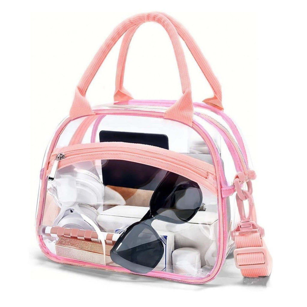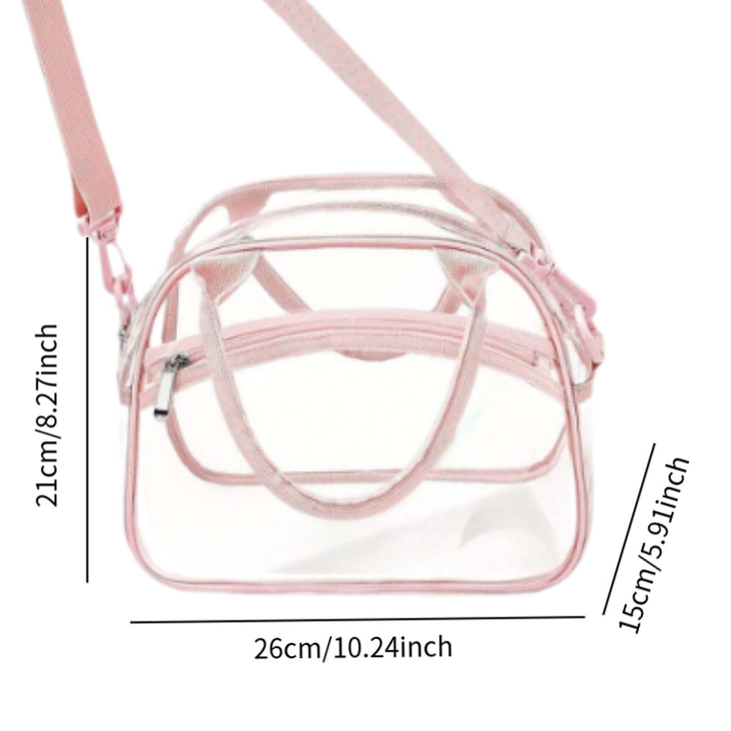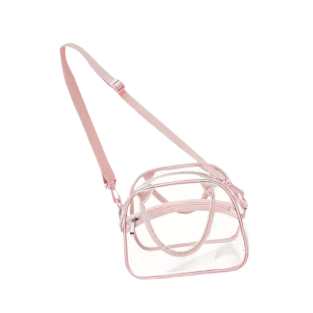 Maxbell Transparent Shoulder Bag PVC Waterproof Handbag for Outdoor Workplace Hiking Pink
