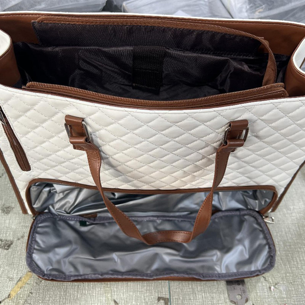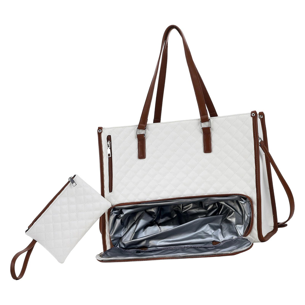 Maxbell Woman Tote Bag Lunch Bag Combo Set Versatile Handbag for Shopping Waterproof White Brown