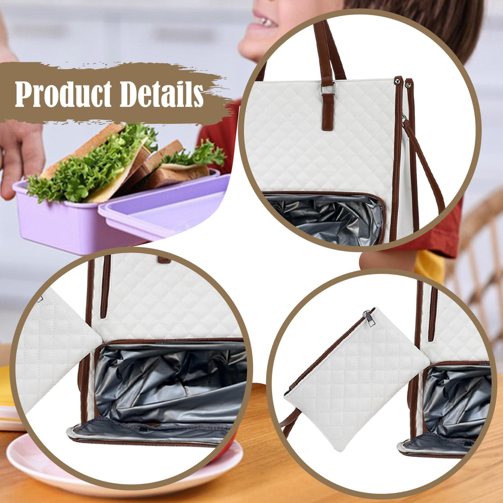 【Material】: 2 In 1 Tote Bag Lunch Bag Combo is made of PU leather, lightweight and wear resistant, easy to clean
