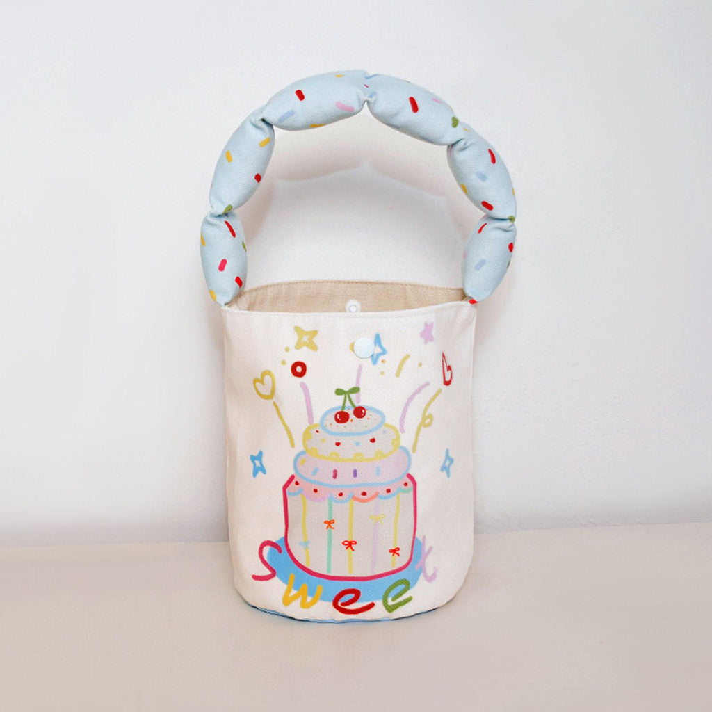 Maxbell Women Bucket Bag Portable Purse Casual Cute Handbag for Gift Holiday Festive Cake Pattern
