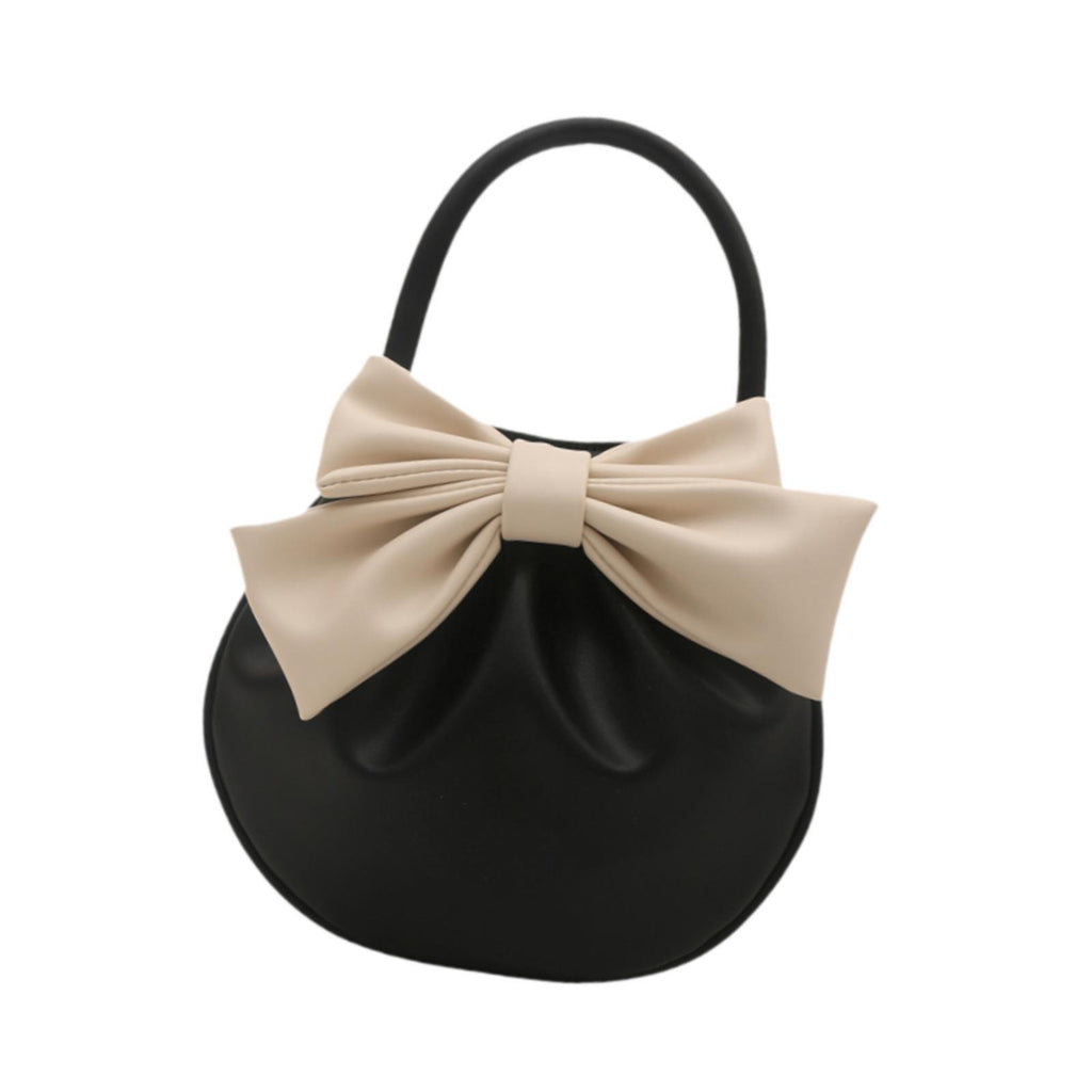 Maxbell Women Handbag Fashionable Ruched Handheld PU Leather Cute with Bowknot Small Black