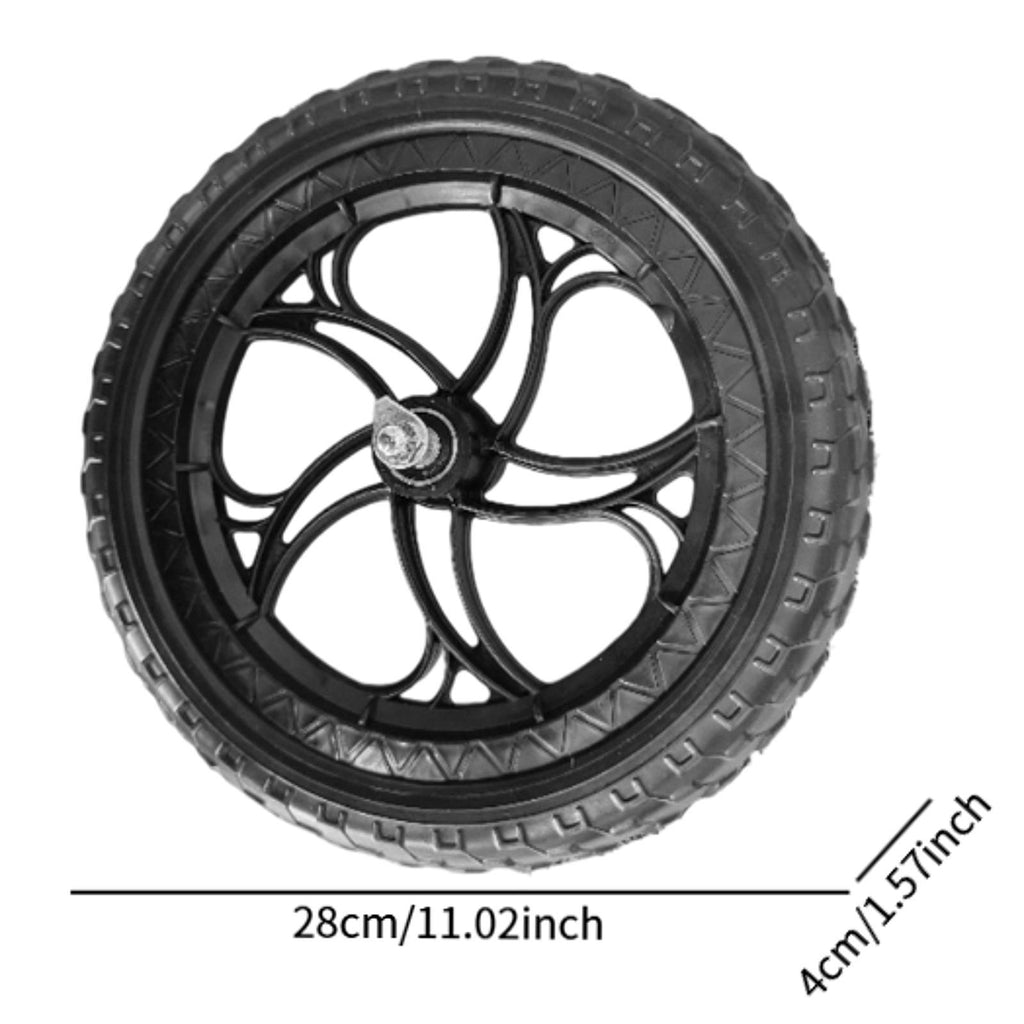 【Optimal Dimensions for Stability】: With a diameter of 28 cm/11.02 inch and a width of 4 cm/1.57 inch, these non inflatable balance bike wheels offer stability and smooth performance on any surface, enhancing your child's overall riding experience