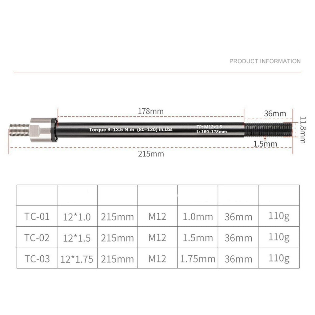 Maxbell 12mm thru Axle 160-178mm Quick Release Bicycle Barrel Shaft for Indoor Parts 12MM x 1.0