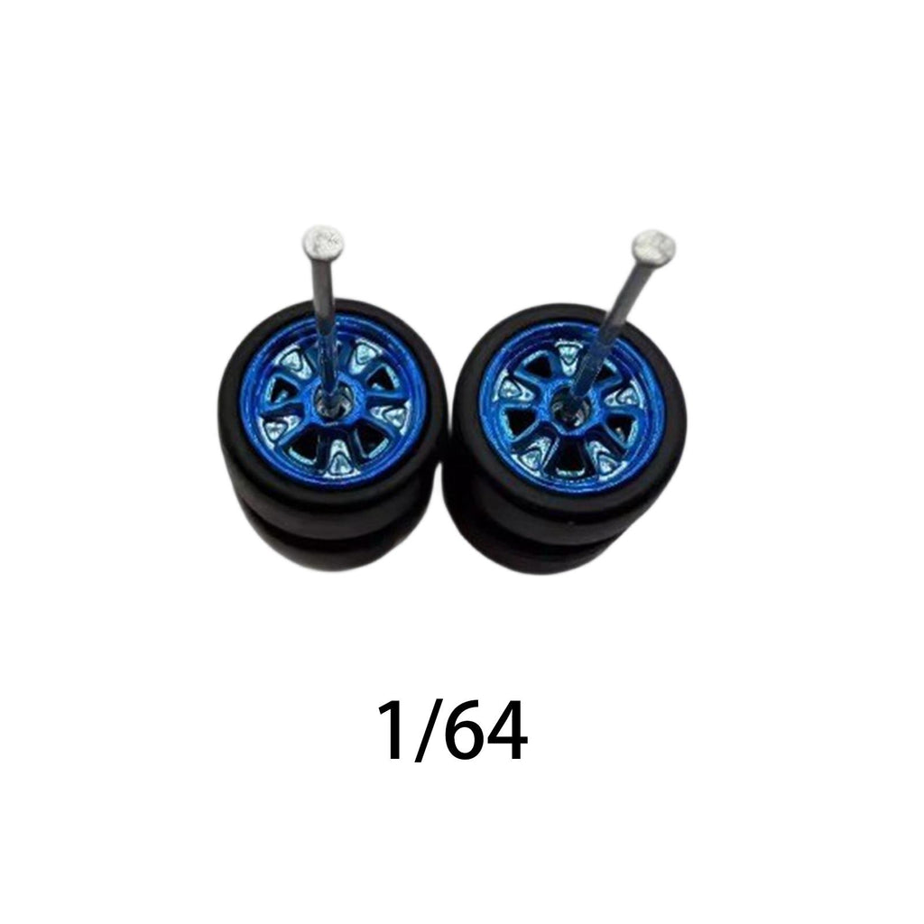 2x 1/64 RC Car Wheels and Tires Sturdy Direct Replaces Spare Parts Accessory Blue