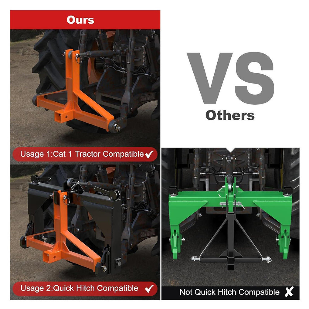 【Three Point Stabilized Hitch】: Features a secure three point hitch system for stable and effortless attachment to tractors, ensuring smooth towing of trailers or equipment