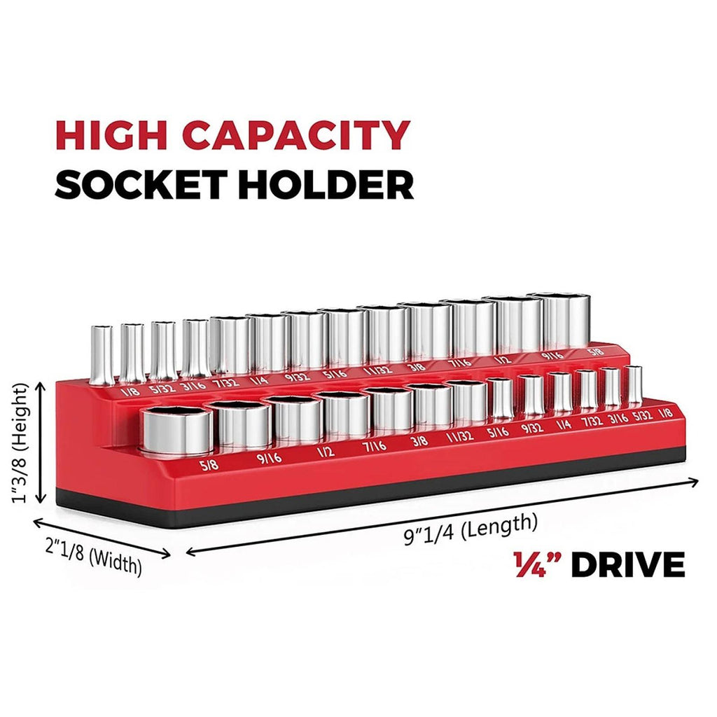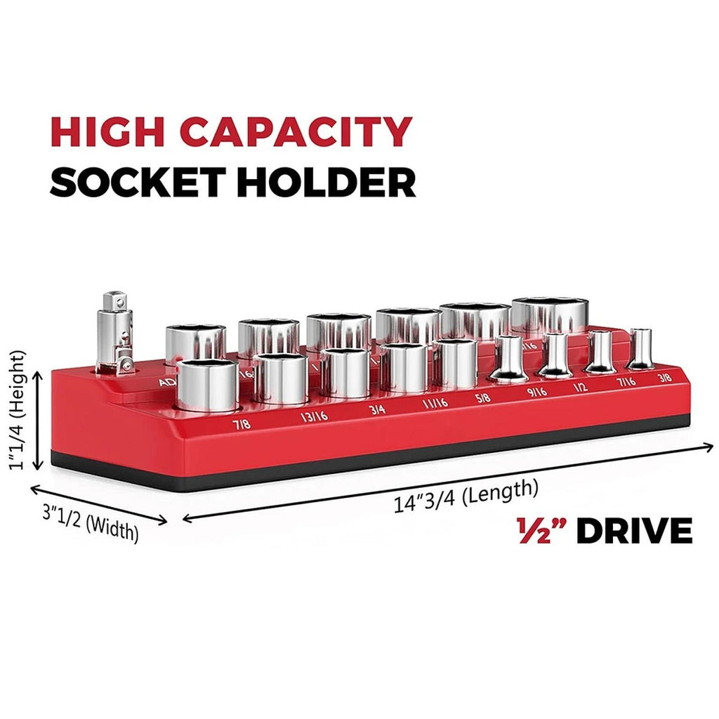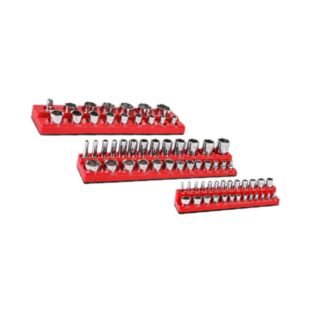 Maxbell 3Pcs Magnetic Socket Organizers Easy to Use Utility Portable for Tool Drawer Red SAE