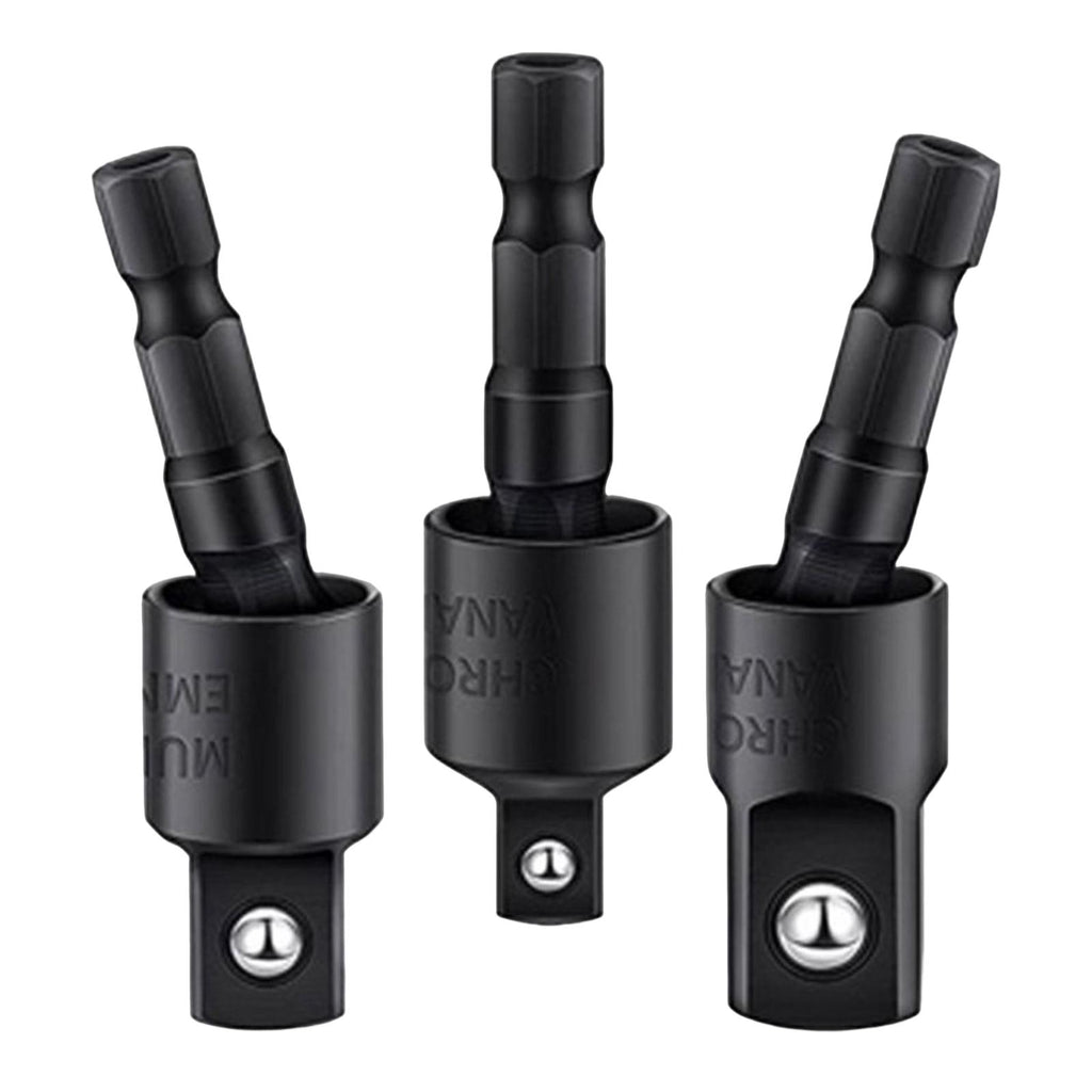 【Versatile】This 360 Degree Universal Joint Swivel Socket Adapter Set includes 1/4", 3/8", and 1/2" drive sizes to fit a wide range of applications.