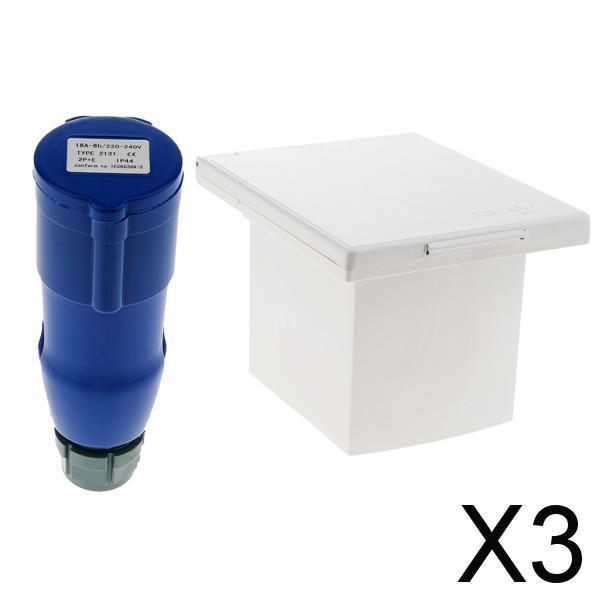 3xRV Camper 220V-240V 16A External Flush Hook Up Waterproof Plug Socket White