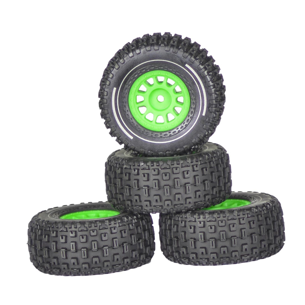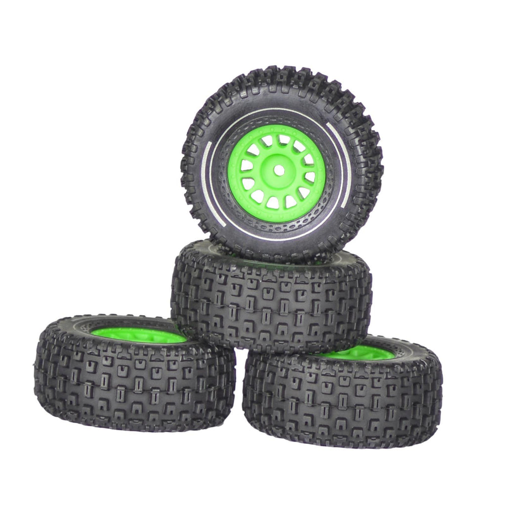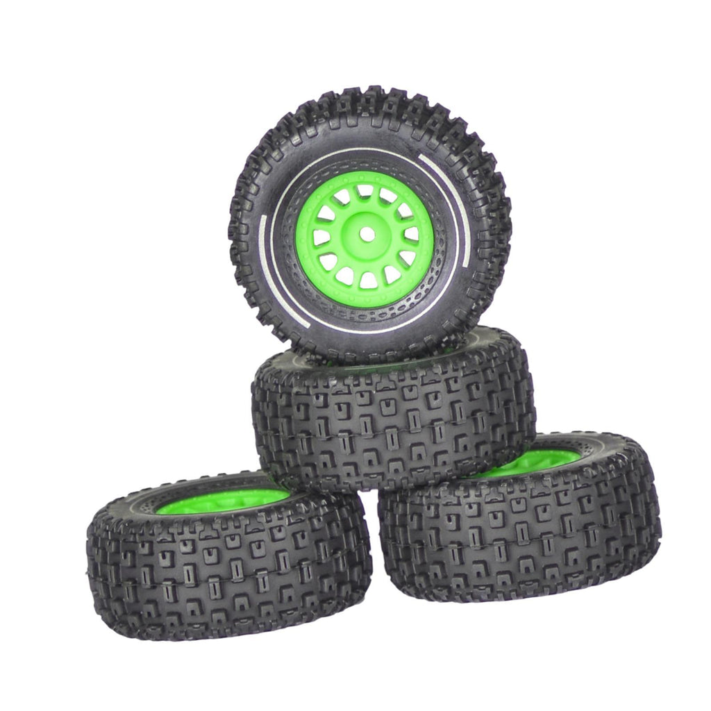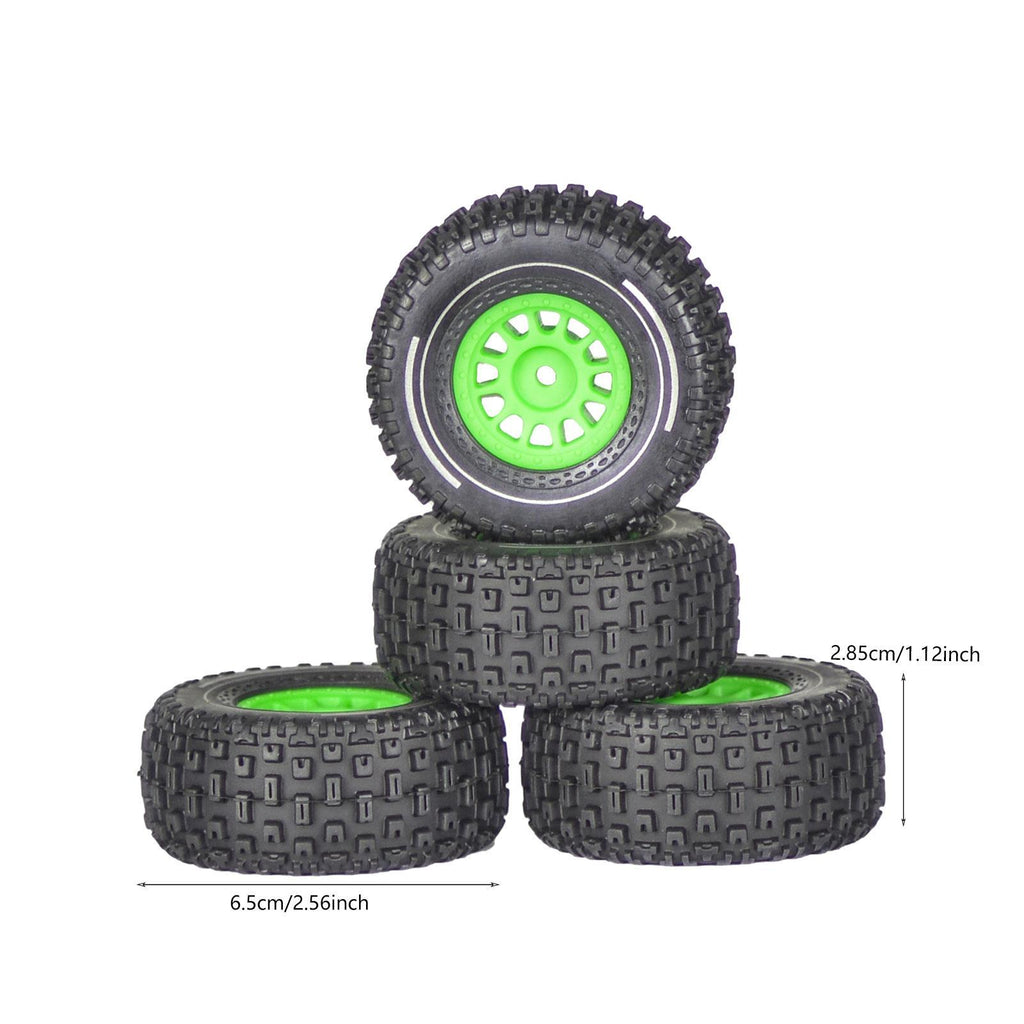 Maxbell 4x 1/14 RC Car Wheels and Tires Sturdy Spare Parts Easy to Install Accessory Green