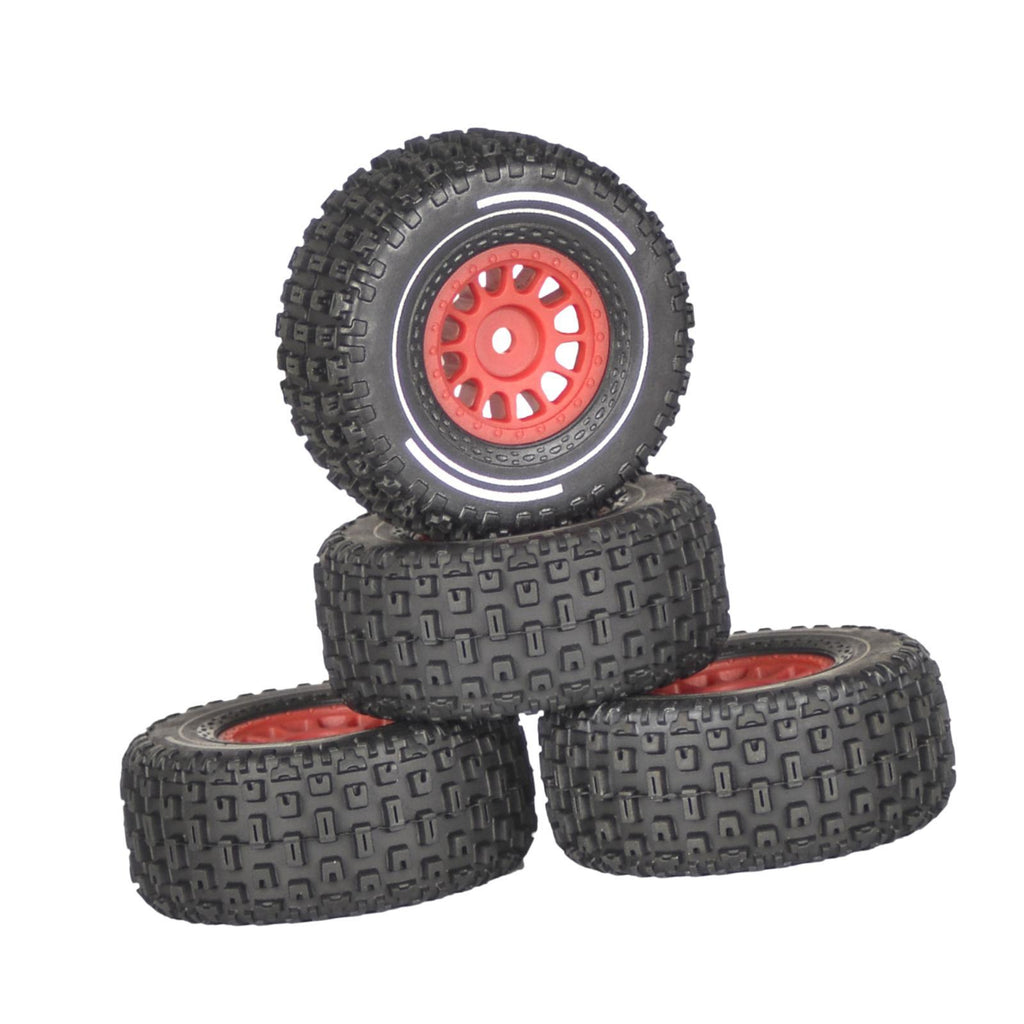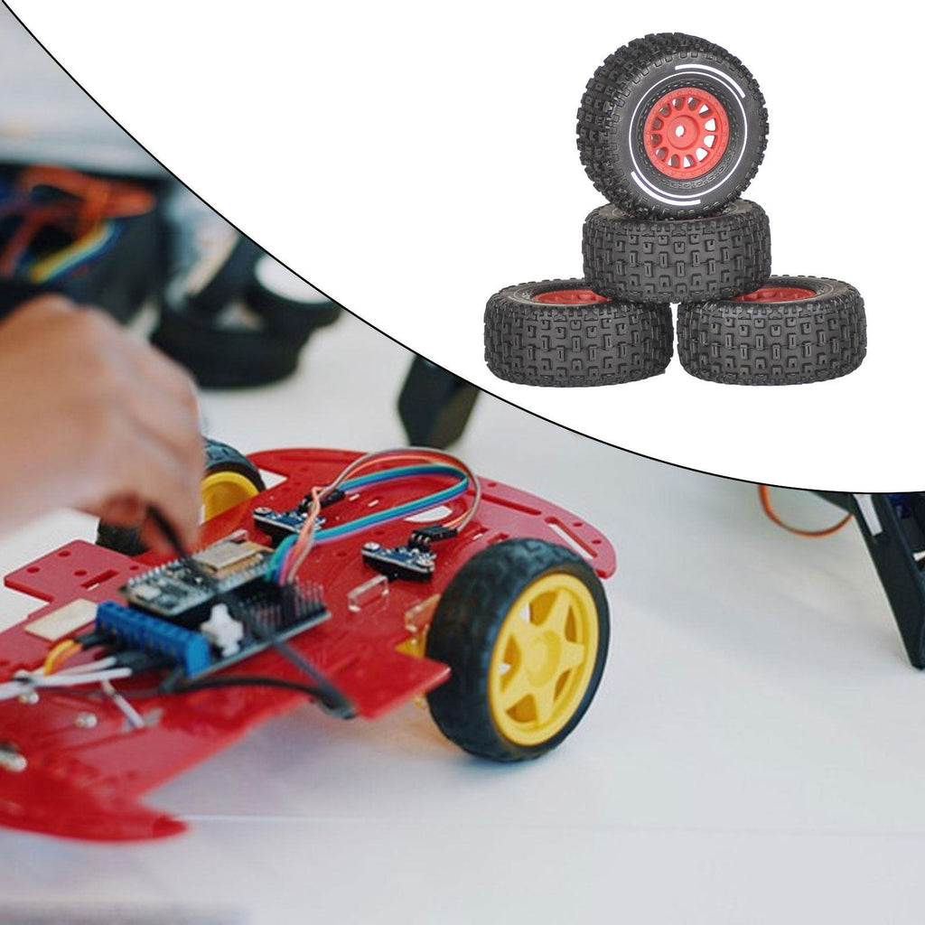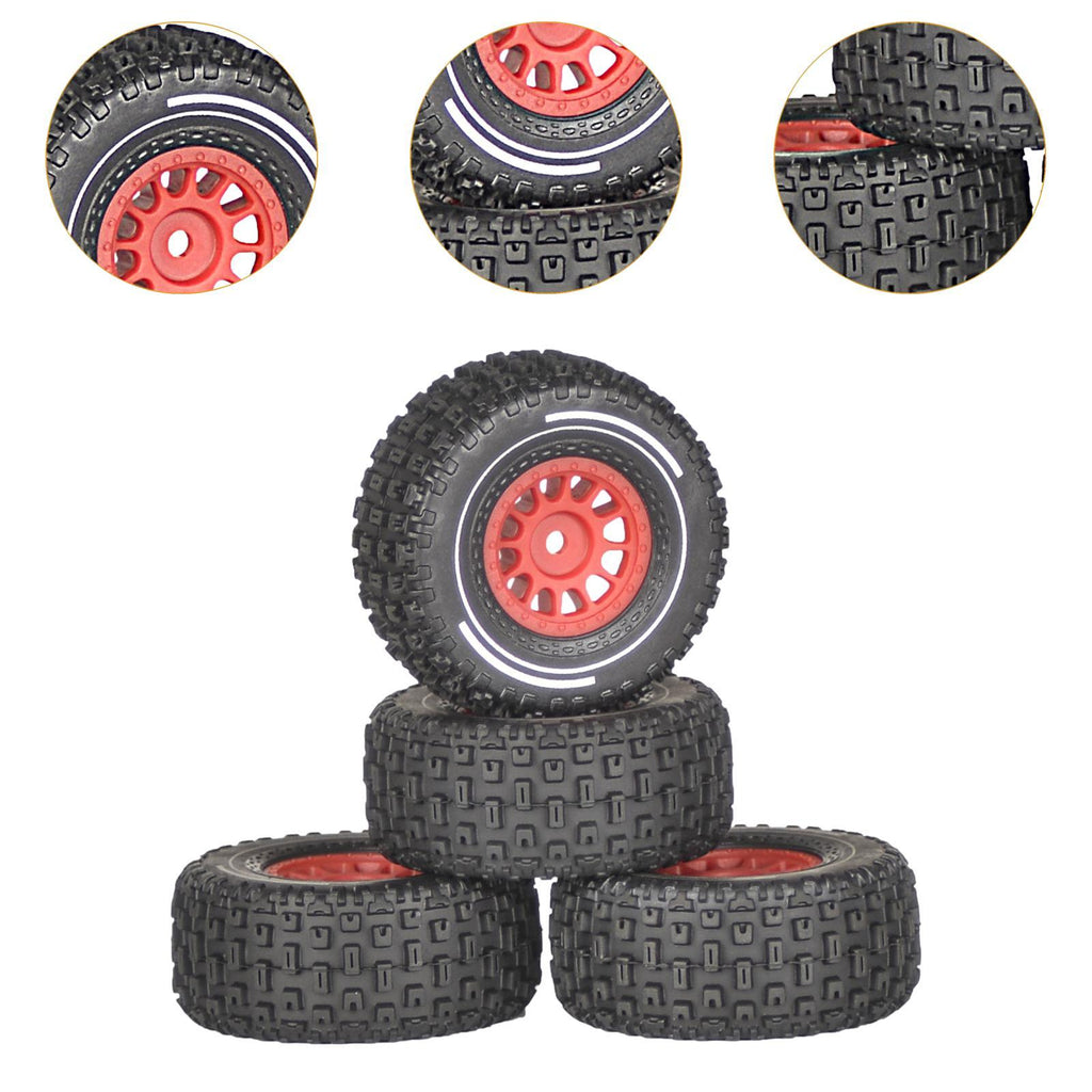 Maxbell 4x 1/14 RC Car Wheels and Tires Sturdy Spare Parts Easy to Install Accessory Red
