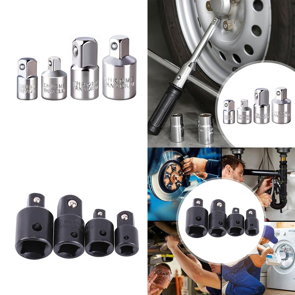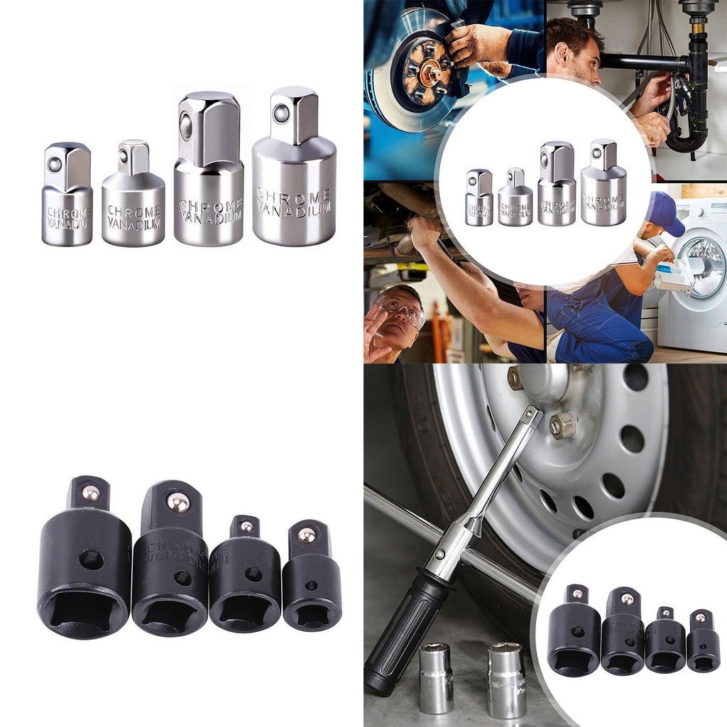 Maxbell 4x Impact Socket Adapter Set Metal High Strength Portable Driver Conversions Silver