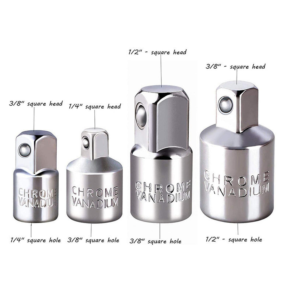 - 【Versatile Compatibility】: Includes 4PC step down socket adapters, converting between large, medium, and small square drives for flexible tool use
