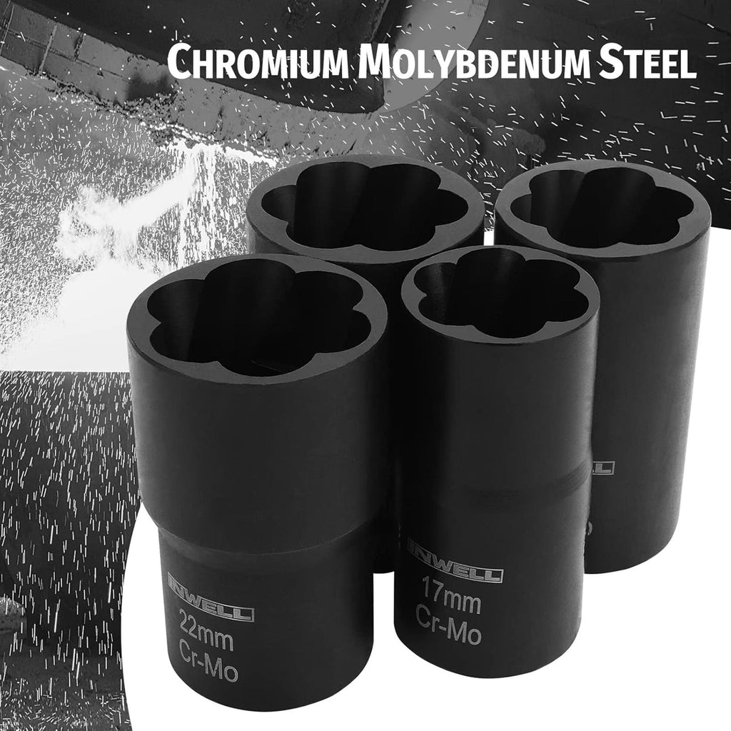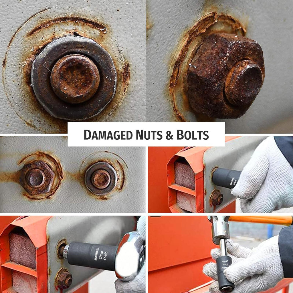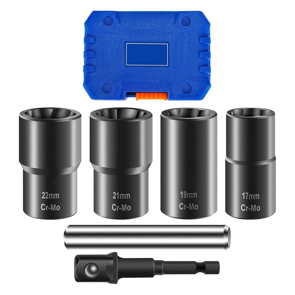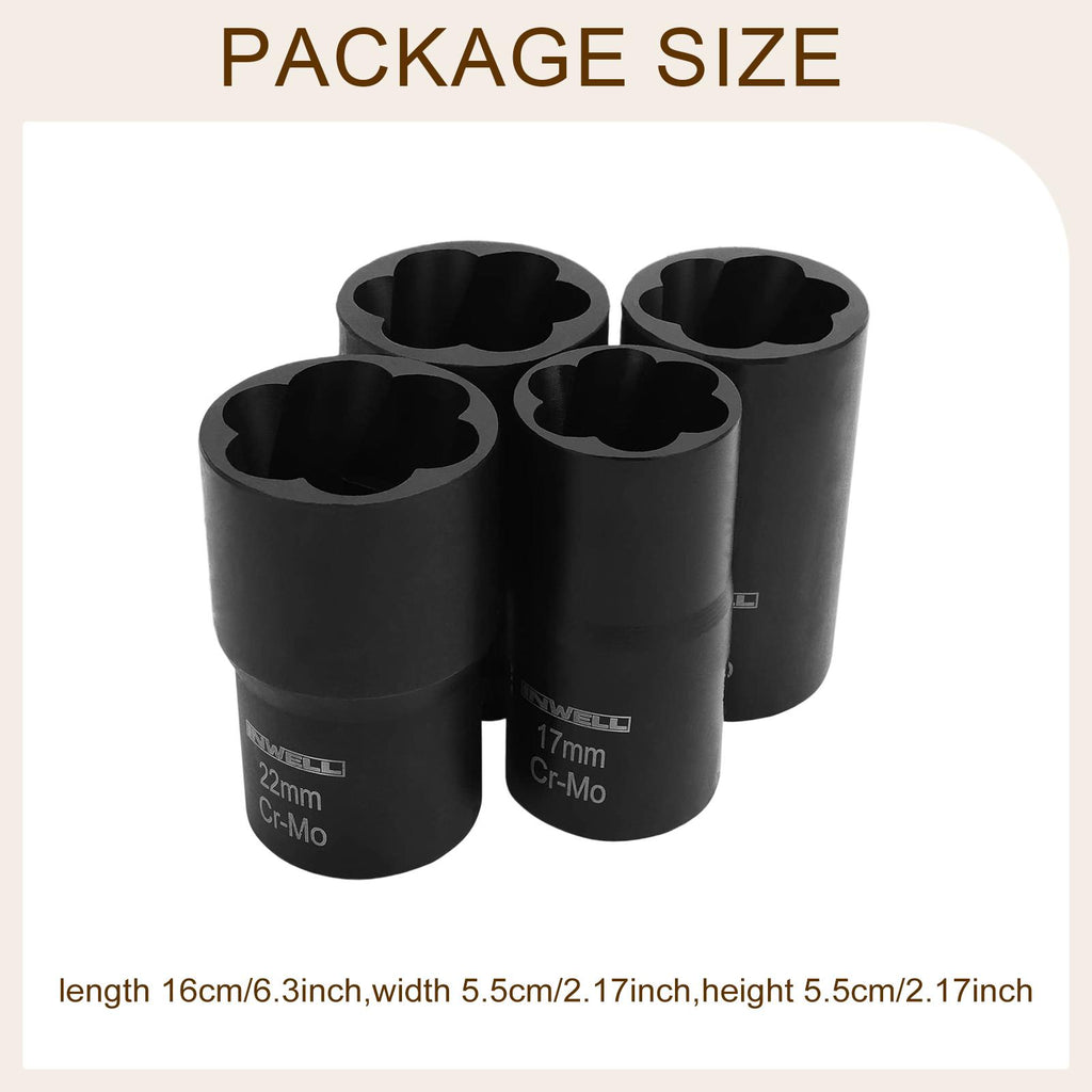 - 【Dimensions】: Metric set includes 17mm, 19mm, 21mm, and 22mm extractors to cover common bolt sizes
