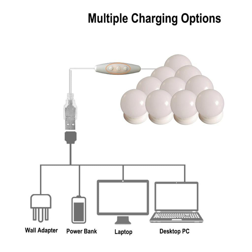 7x10Pcs LED Vanity Dimmable Mirror Lamp Lights Bulbs Kit adhesive