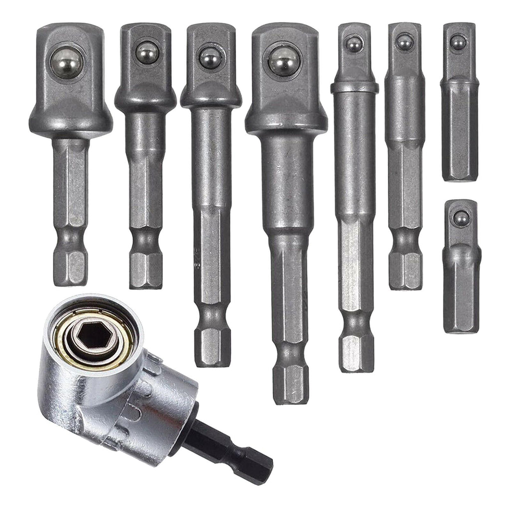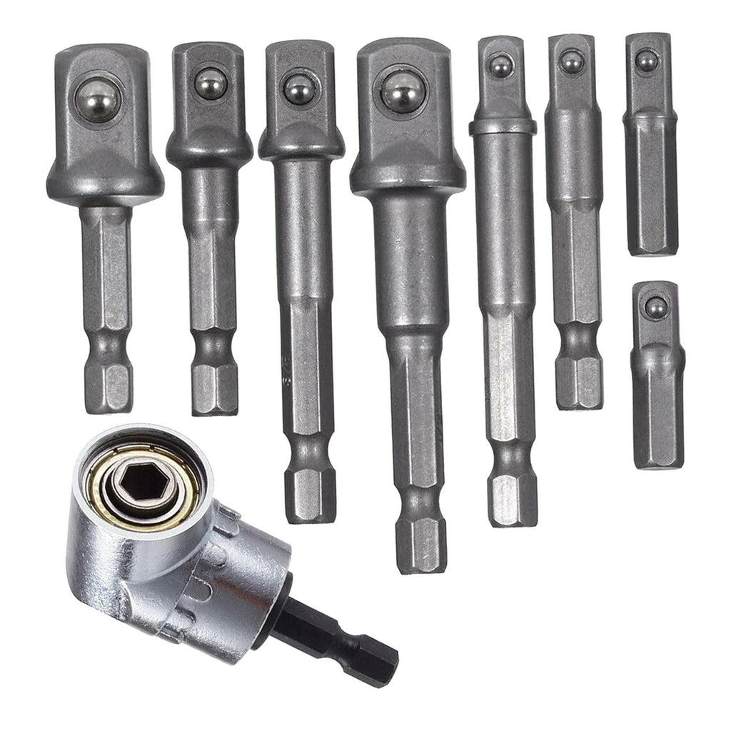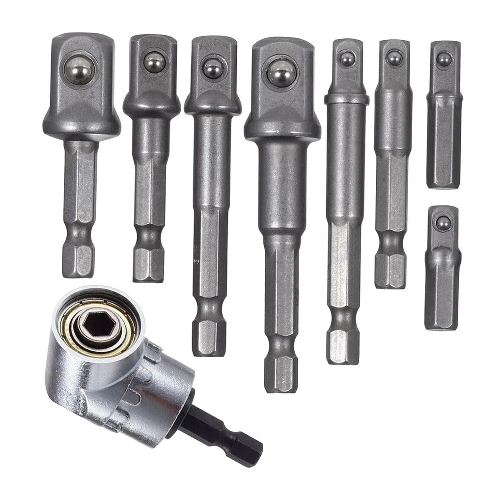 Maxbell 9x Socket Adapter Hex Impact Drill Bits Set Driver Tools 1/4" Extension Tool