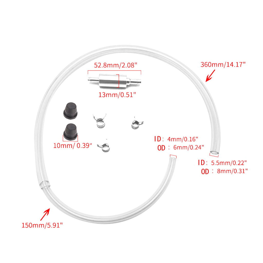 Inlet Tube Inner Diameter 4mm/0.16inch; Outer Diameter 6mm/0.24inch; Thickness 1mm/0.04inch; Length 15cm/5.91inch