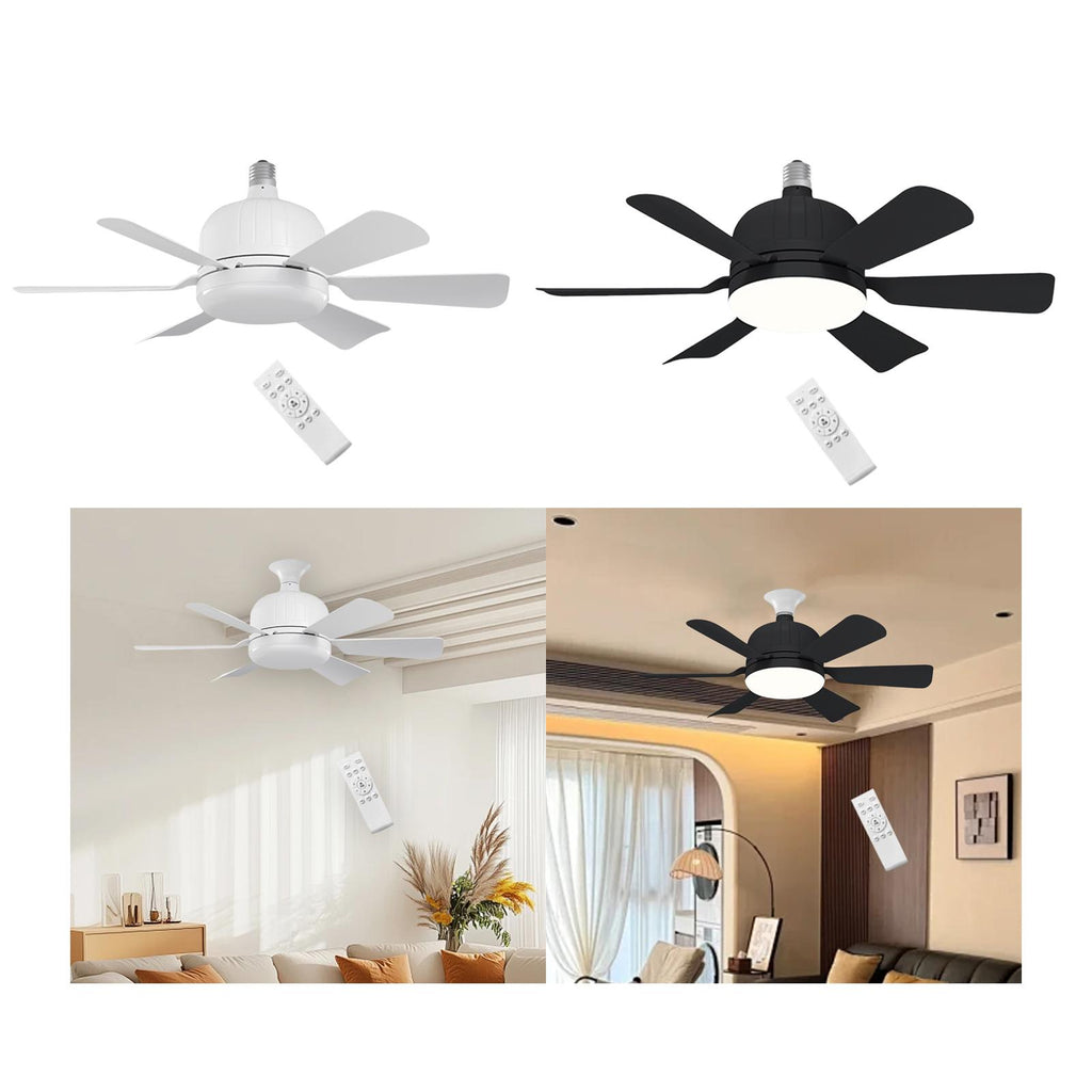 【Easy Installation】: The wireless ceiling fan can be used in E27 bulb sockets, screw it in like light bulbs, no complicated wires or hanging fixtures are needed