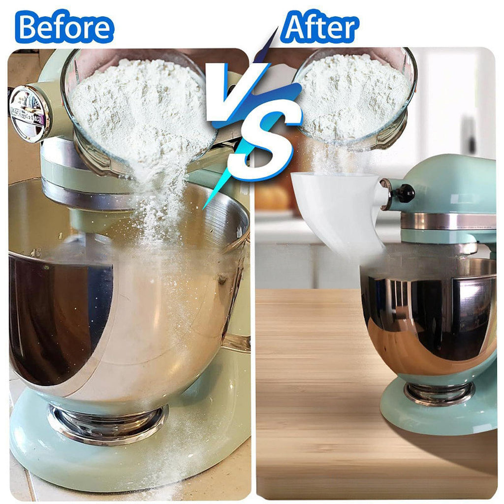 - 【Design】: Features a carefully crafted spout to smoothly transfer flour, batter, and other ingredients into your mixer bowl, avoiding spills during pouring