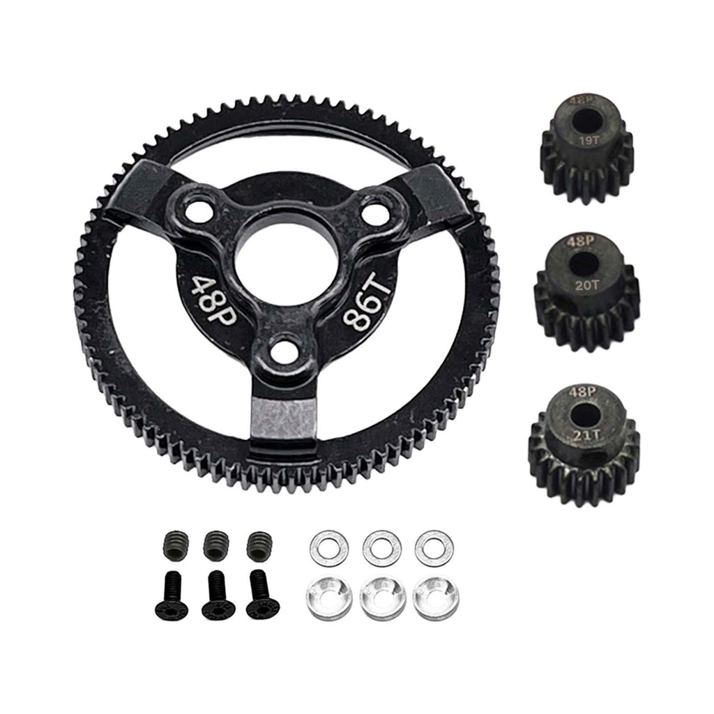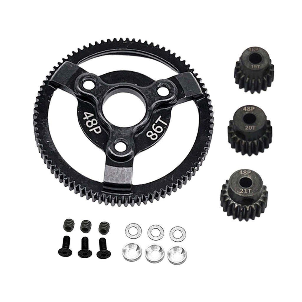 【Comprehensive Gear Set】: The package includes hardened black steel gears in sizes 83T, 86T, and 90T with a module of 0.53, providing a robust replacement for your vehicle's main gear