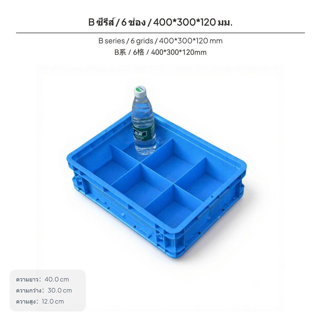 HDPE Multi-Compartment Plastic Parts Organizer Box, Rectangular, Stackable B 6 Grids