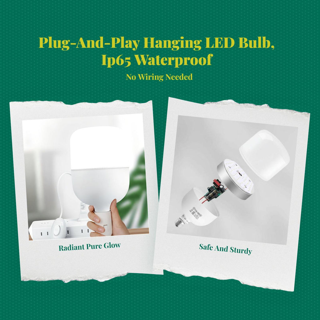 【Energy-Saving light-emitting diode Bulb for Outdoor Use】This waterproof light-emitting diode bulb, equipped with an E27 hanging socket, provides exceptionally bright lighting—perfect for use in garages, offices, and as part of your home décor outdoors.【Easy to Install and Operate】Designed with a convenient pull cord and plug, this lamp holder ensures quick installation and effortless functioning across various settings.【sturdy and Weatherproof Design】Engineered for outdoor use, its waterproof construction guarantees dependable performance even in rain or high humidity.【Versatile Application】Perfect for outdoor areas, garages, offices, and homes, this light-emitting diode bulb holder adapts easily to a wide range of settings and requirements.【High Quality and Cost-Effective】Made from premium materials and featuring energy-saving technology, this light-emitting diode bulb delivers superb practicality and great value for money.