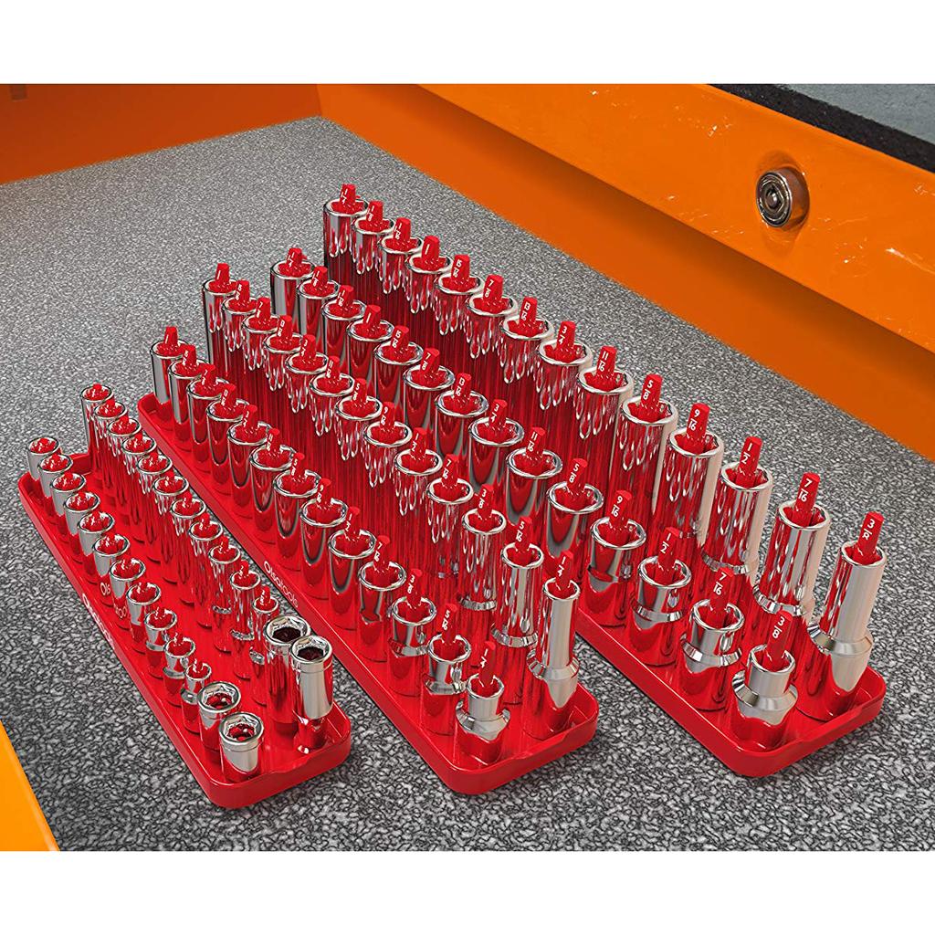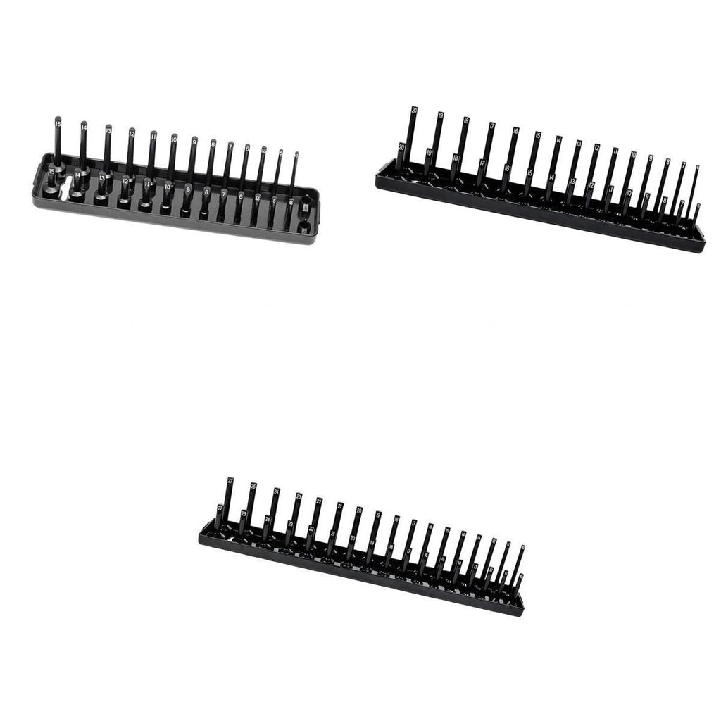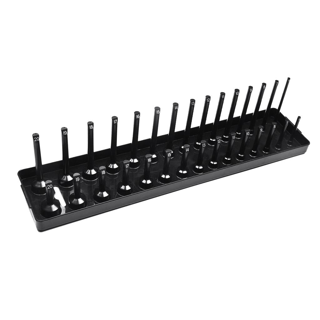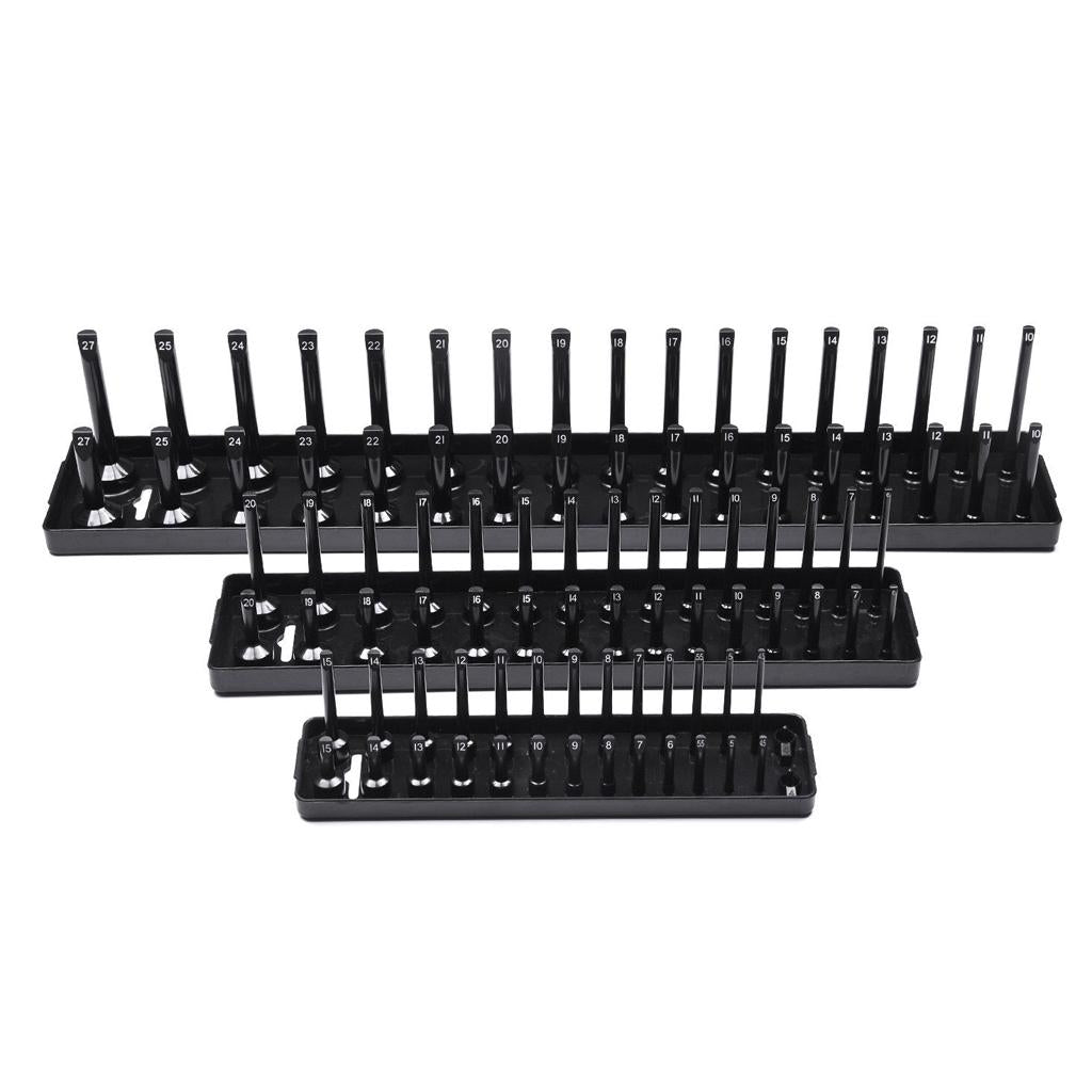 Maxbell Metric Socket Tray Rack Holder Storage Tool Organizer 1/4" 3/8" 1/2" Black