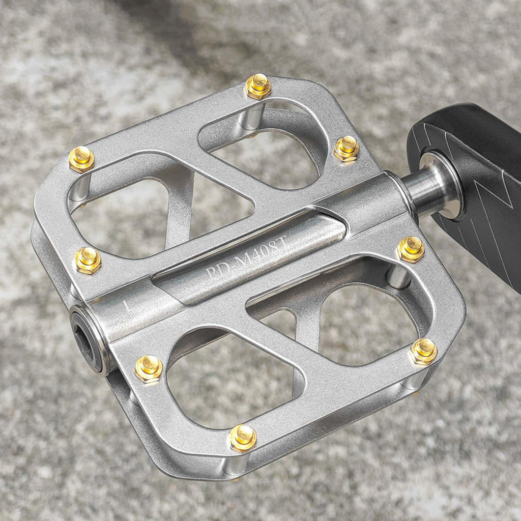 【Quality Material】: The titanium alloy bicycle pedals are made of titanium alloy, which is lightweight yet sturdy. The high strength titanium axle and three sealed bearings ensure effortless pedaling and better energy distribution