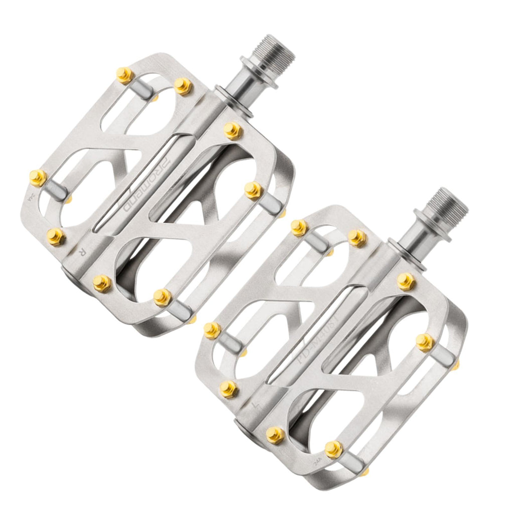 【Package Includes】: Each package comes with 2 titanium alloy bicycle pedals, great for upgrading or replacing your current set