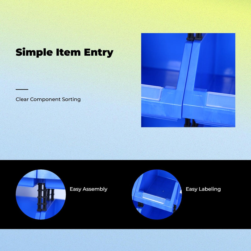 Parts Organizer Box, Stackable Storage Container, Adjustable Compartments, Home Office Blue 61x41x22cm