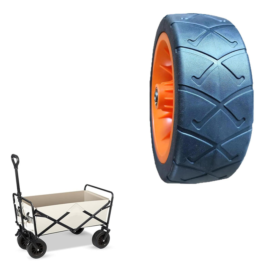 - 【Construction】: Made from wear resistant PVC solid material, these heavy duty wagon wheels maintain their shape and performance even on paths and muddy terrain