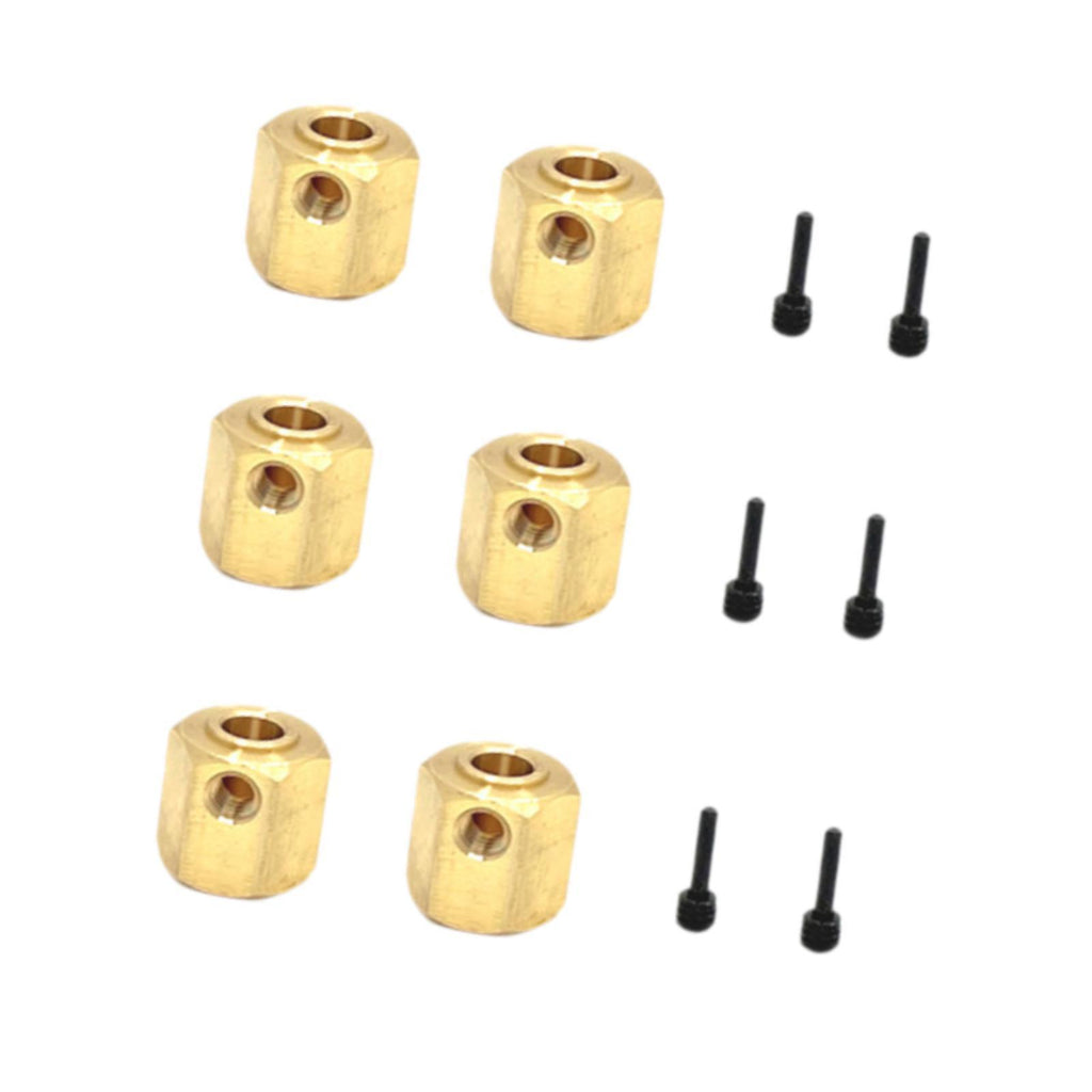 Hex Wheel Hubs: Outer Diameter: 1.2cm/0.47inch, Height: 1.3cm/0.51inch Hole Diameter: 0.5cm/0.20inch, Screw: M4x12mmPackage Includes:
