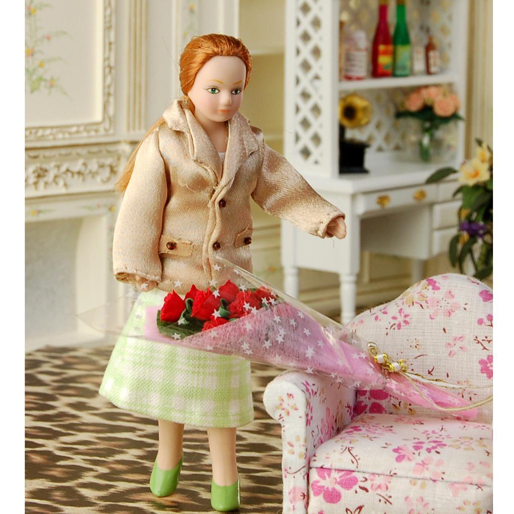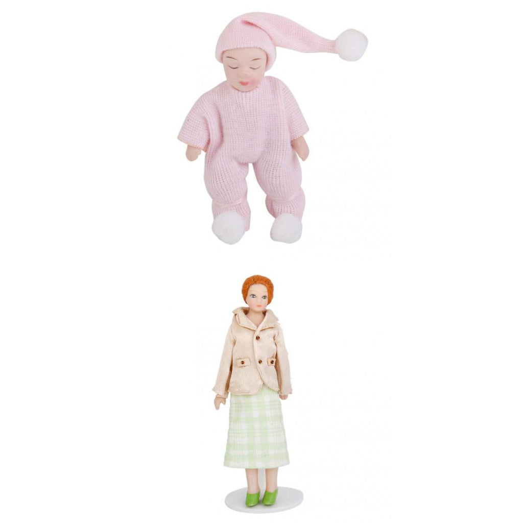 Maxbell 1/12 Dolls House Miniature Porcelain Dolls Long Hair Lady & Sleeping Baby