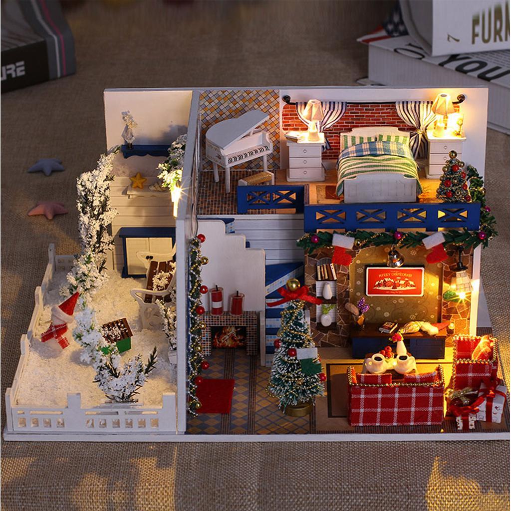 1:24 Dollhouse Miniature DIY House Kit Creative Room with Furniture Collection Christmas Gifts.