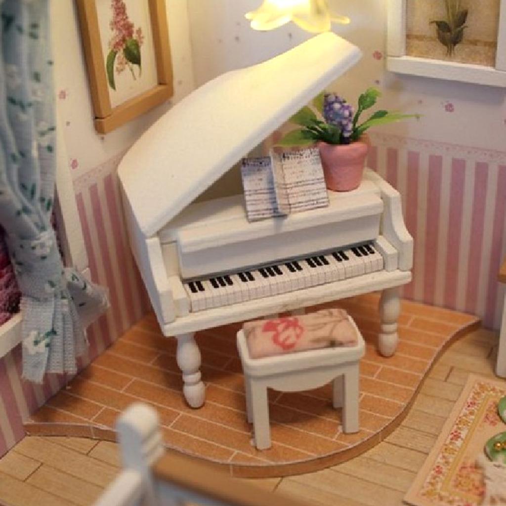 1/24 Dollhouse miniature furniture kit DIY wooden handmade European simple style prince doll house kits model w. home item accessories (light, bedroom, table, sofa, piano, paintings and etc. )