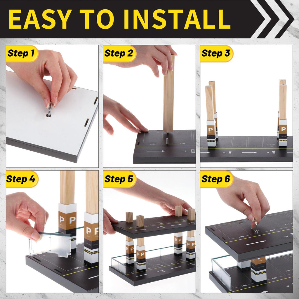 【Material】: 1:64 scale mini car parking scene made of high quality wooden, durable and exquisite workmanship.