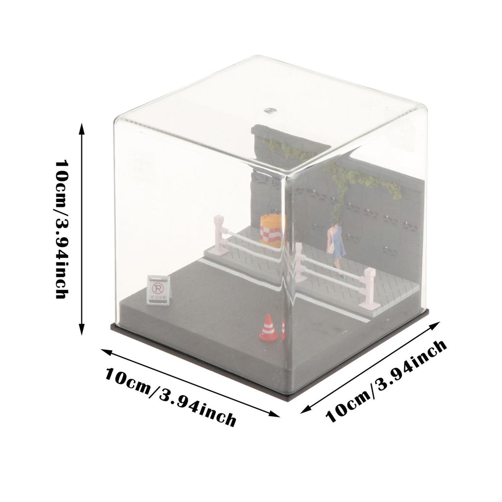 【Premium Material】: The Car display scene backdrop model box is made of premium acrylic and plastic, equipped with dustproof cover, sturdy, and provides a clear view of your displayed items