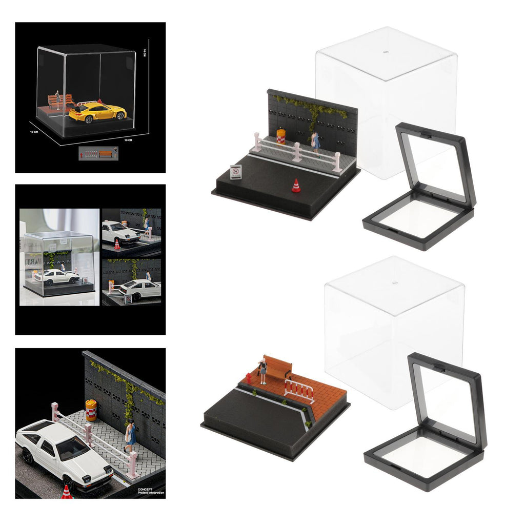 Maxbell 1/64 Model Car Display Case Toy Car Storage Box for Action Figures Alloy Car Street Railings