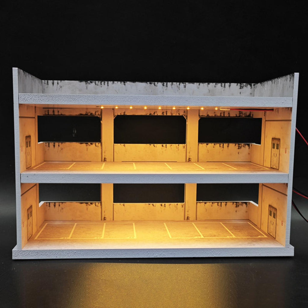 【Parking Lot Scenario】: Reliastic rooftop parking lot scene diorama, built in light, providing a special atmosphere scene to display your collectibles, approx. 30cmx15cmx19cm/11.81inchx5.91inchx7.48inch