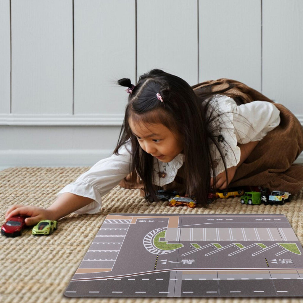 【Easy to Store】: Car Scene Mat can be rolled up in a compact form, easy to store when not in use, and can also be easily transported to different places