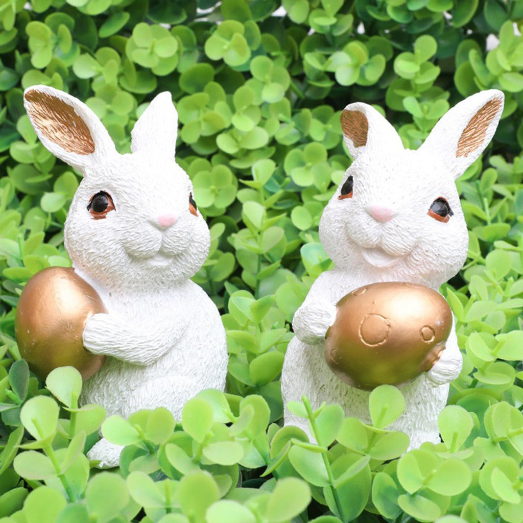 Maxbell 1 Pair Mini Easter Bunny Statue Resin Material Table Ornament for Patio Lawn