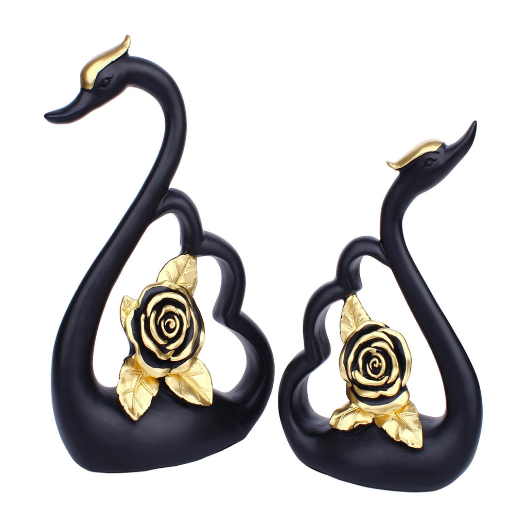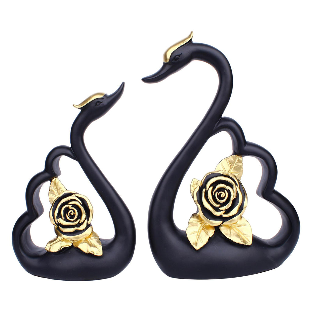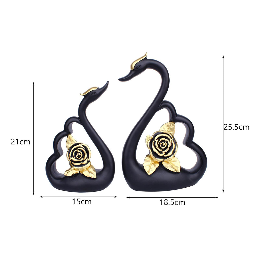 Maxbell 1 Pair Resin Swan Couple Sculpture Desktop Decoration for Coffee Table Decor Black