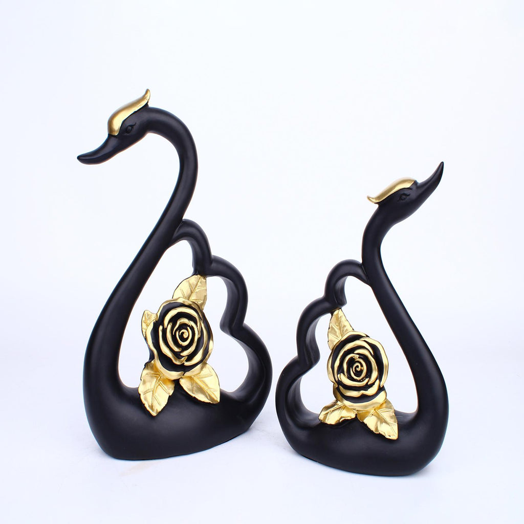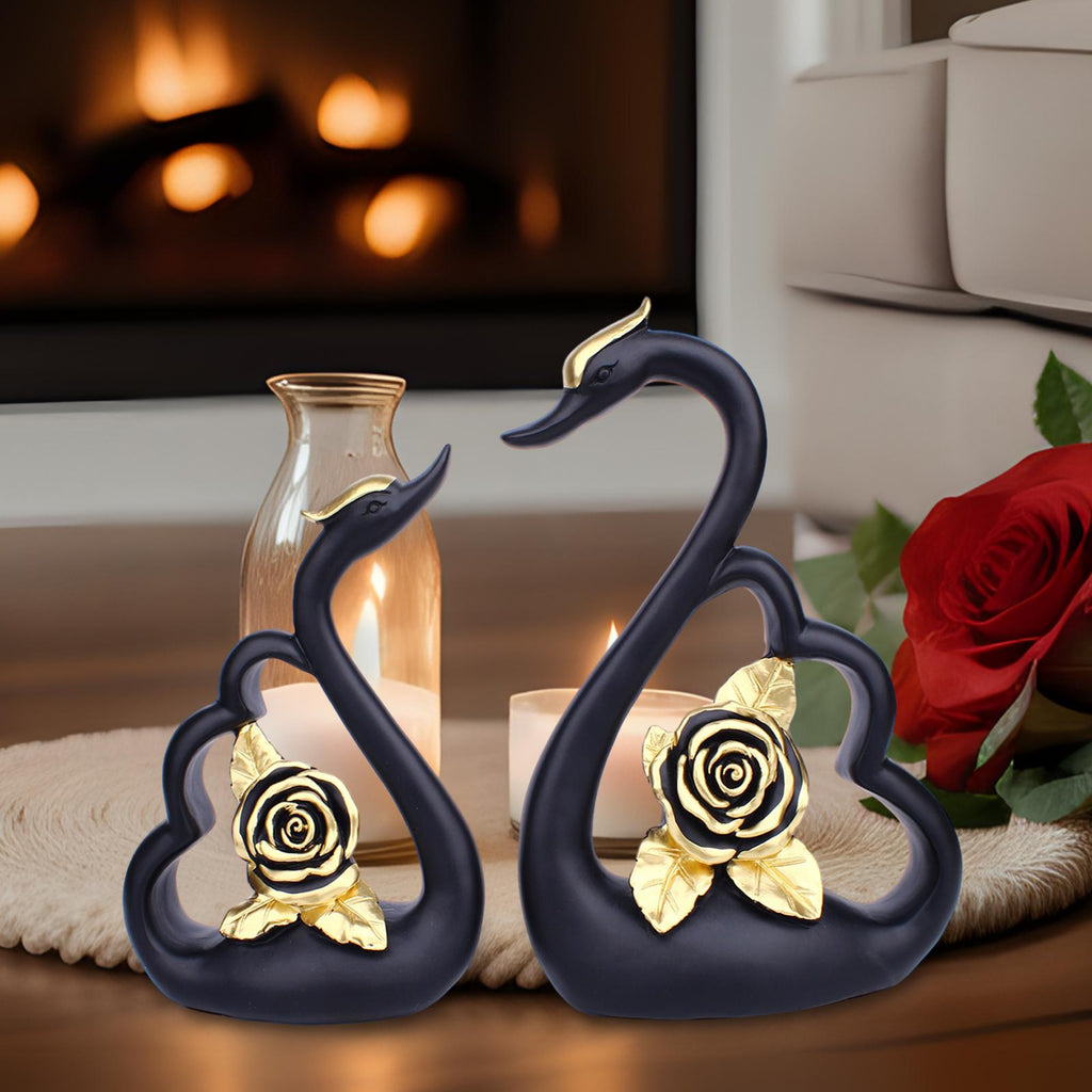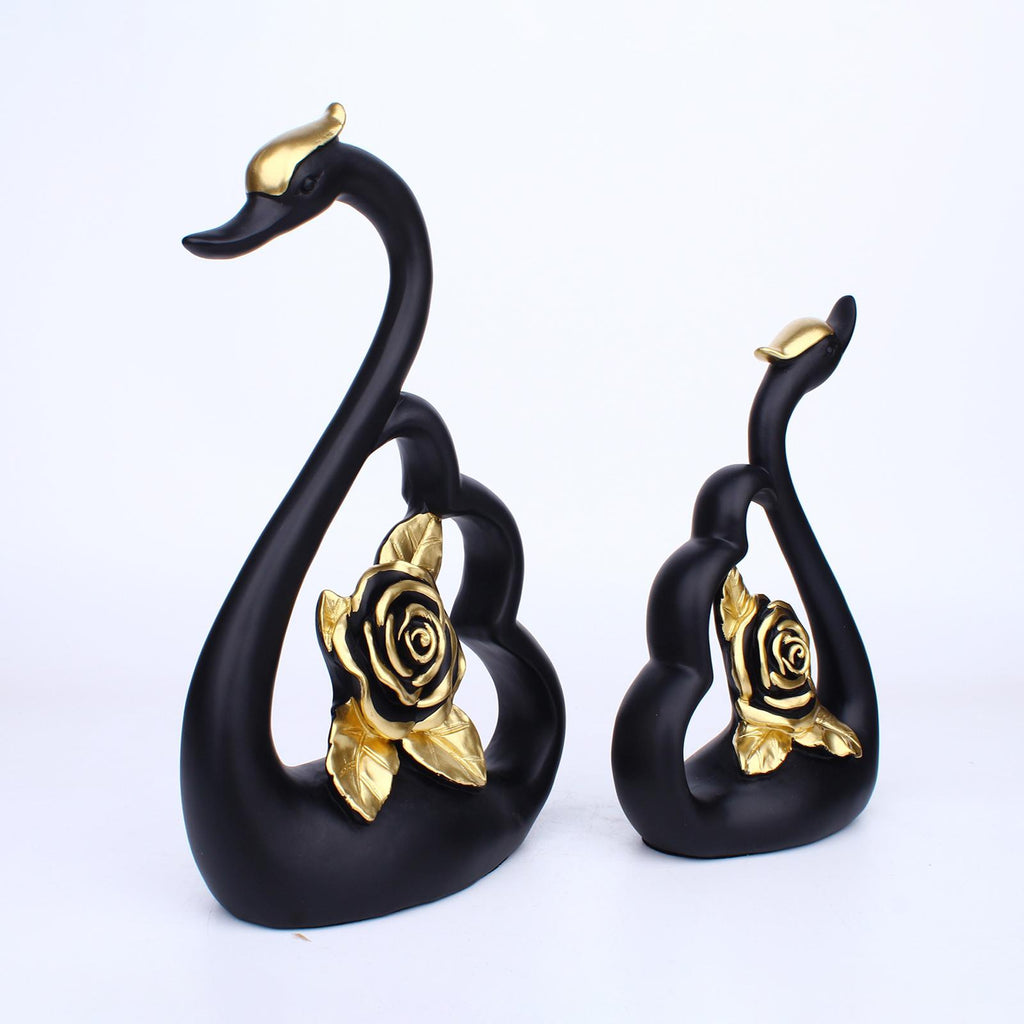 Maxbell 1 Pair Resin Swan Couple Sculpture Desktop Decoration for Coffee Table Decor Black